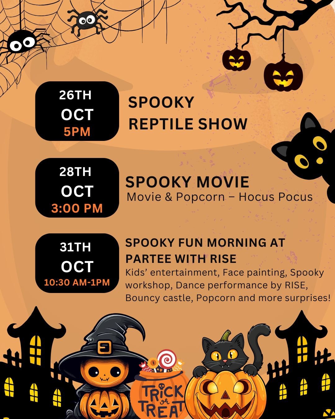 Pendant les vacances de la Toussaint et pour Halloween, il y aura des événements spéciaux et du plaisir chaque jour à partir du 26 oct.. Ne manquez pas la soirée effrayante avec films et popcorns, le show de reptiles pour les choses qui rampent dans la nuit, et les activités et le plaisir d'Halloween.