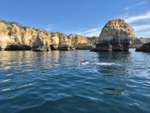 Berømt for deres ikoniske havhuler og dramatiske klipper, tilbyder disse steder unikke havlandskaber at udforske. Benagil Hulen, en af Algarves mest berømte seværdigheder, er absolut et besøg værd. Der er ikke tilladt at svømme til Benagil hulen, men du kan besøge den med båd eller kajak. Find ud af sådan besøger du Benagil hulen i 2025. Dog kender Ricardo til andre fantastiske huler i nærheden, som du kan svømme til, lige så fantastiske, og med meget mindre trafik. Deltag i en Adamastor Swim Tour for at låse hemmeligheden op..