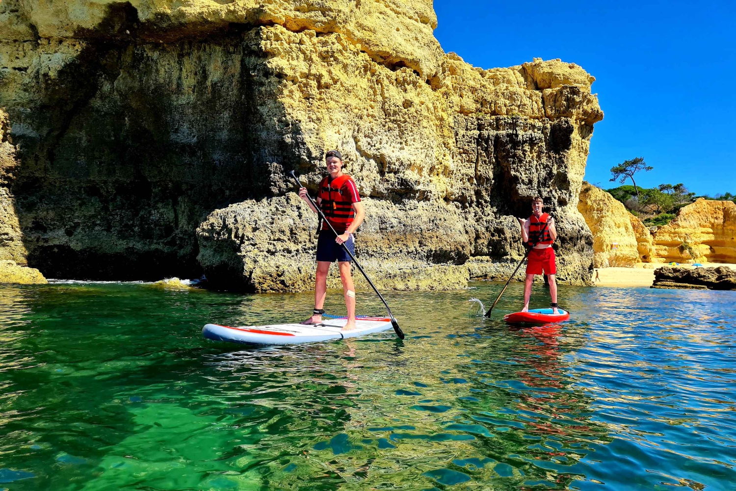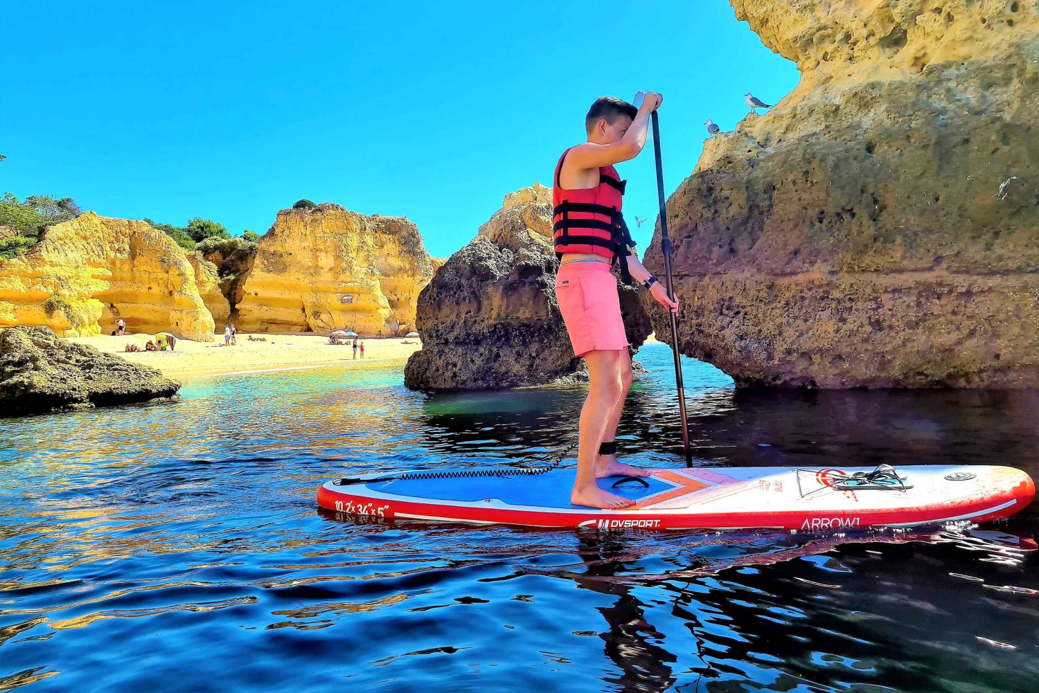 Opdag skønheden ved Albufeiras dynamiske kystlinje og klipper på denne paddle boarding-tur. Hold dig energisk og hydreret med vand og en snack fra din guide. Brug udstyr af høj kvalitet til at baner dig vej langs unikke klippeformationer.