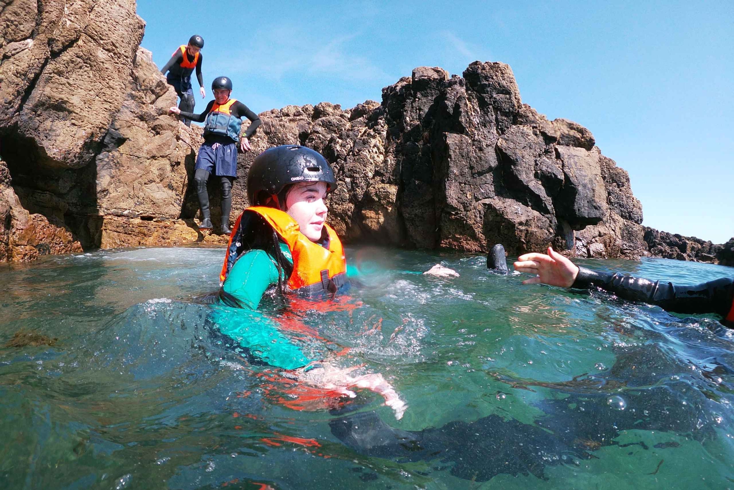 Guidet aktivitet med en kvalificeret Coasteering-guide med livreddercertifikat;