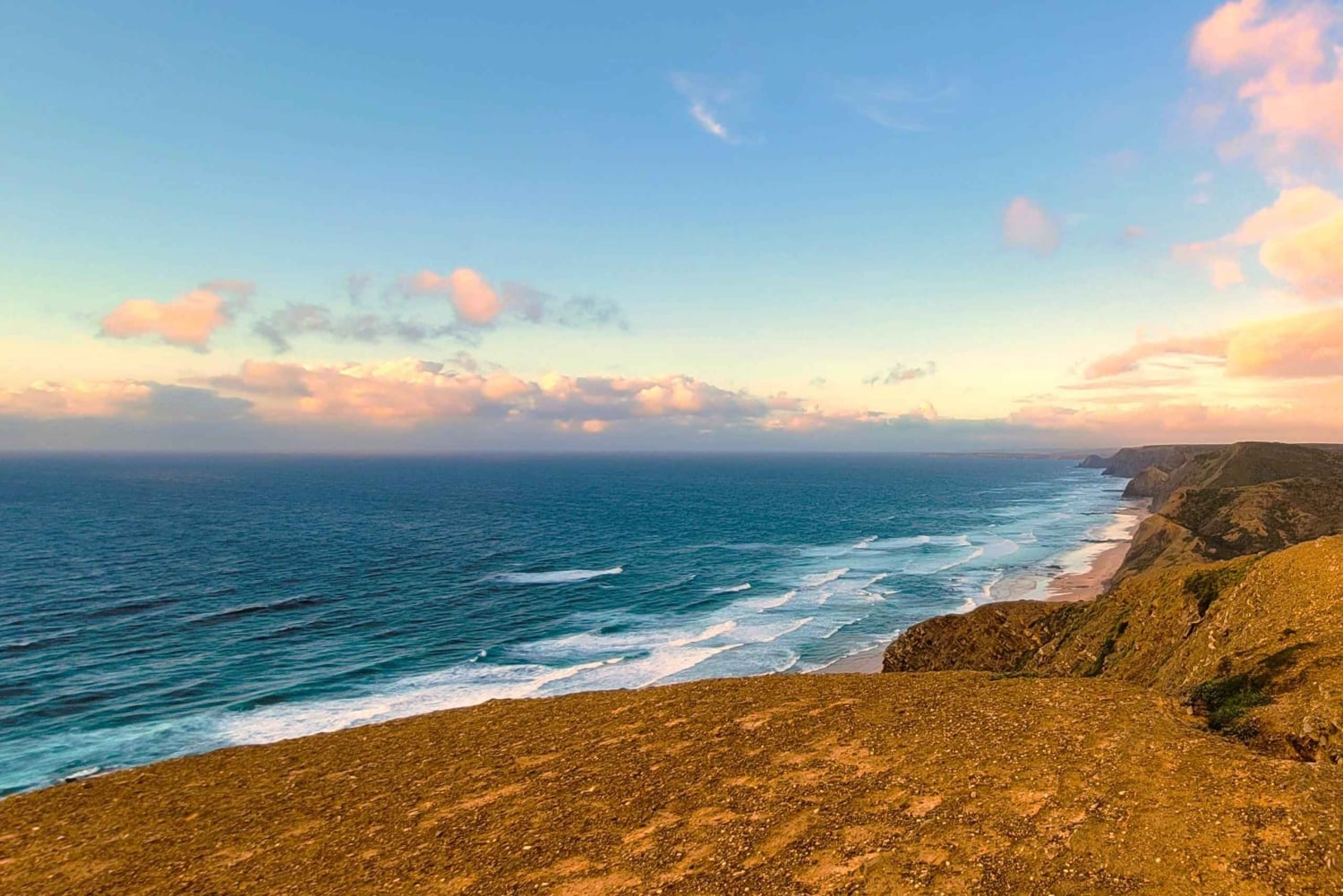 Die Tour endet am Cordoama-Strand oder an der Ponta Ruiva, einer abgelegenen und unberührten Naturlandschaft, die zum Entspannen und Genießen des Sonnenuntergangs einlädt. Bei einem Glas portugiesischen Weins und traditionellem Brot mit Wurst können die Gäste den atemberaubenden Blick auf den Sonnenuntergang am Horizont genießen.