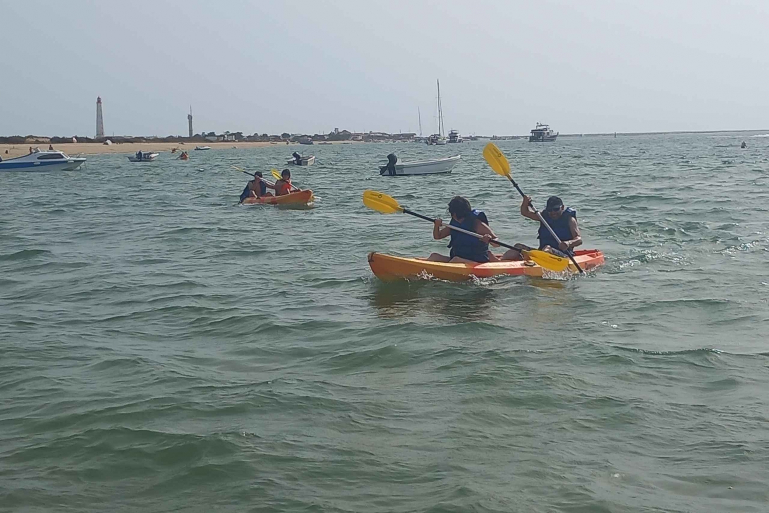 Erlebe die fantastische Kajaktour, die dich zu einer der Inseln im Ria Formosa Naturpark führt.