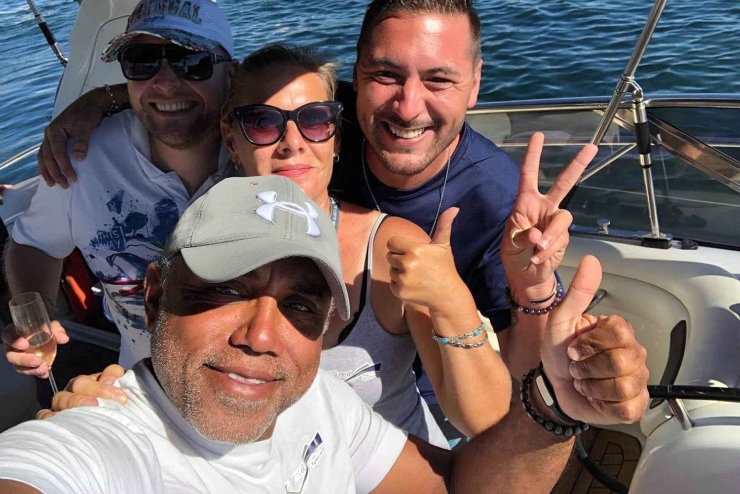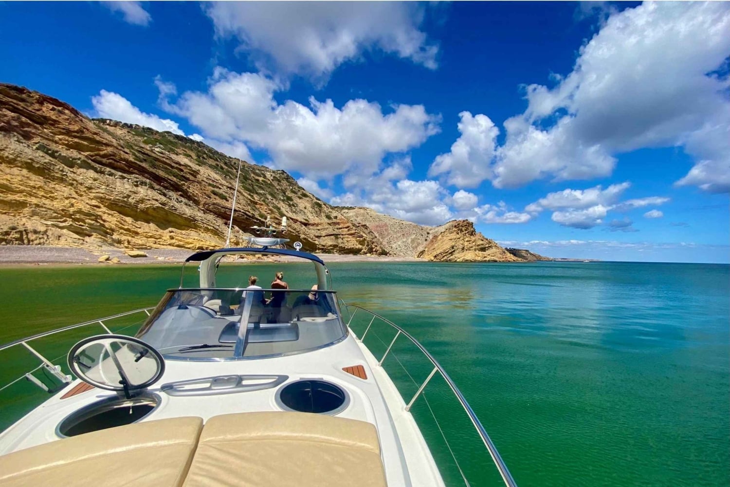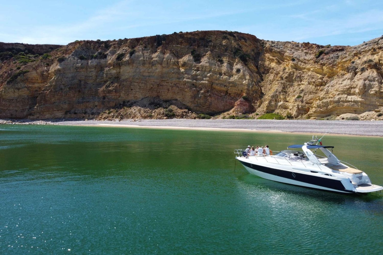 Entdecke die atemberaubende Küste der Algarve bei einer Tageskreuzfahrt auf deiner eigenen privaten Jacht. Schwimm und schnorchel im klaren Wasser, während du erfrischende, leckere Drinks genießt.