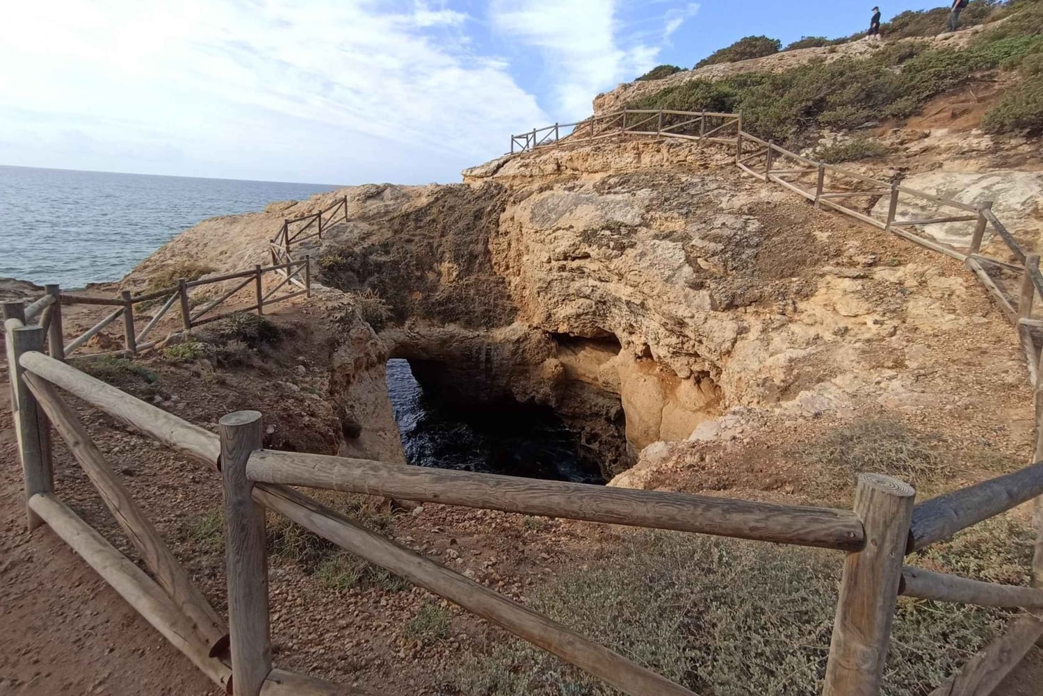 Während der Wanderung wirst du atemberaubende Ausblicke auf die dramatischen Klippen, versteckten Buchten, Senklöcher und Felsformationen genießen, die über Millionen von Jahren von der unerbittlichen Kraft des Ozeans geformt wurden. Die kontrastierenden Farben der goldenen Klippen, der grünen Vegetation und des blauen Meeres schaffen einen faszinierenden und farbenfrohen Naturteppich.