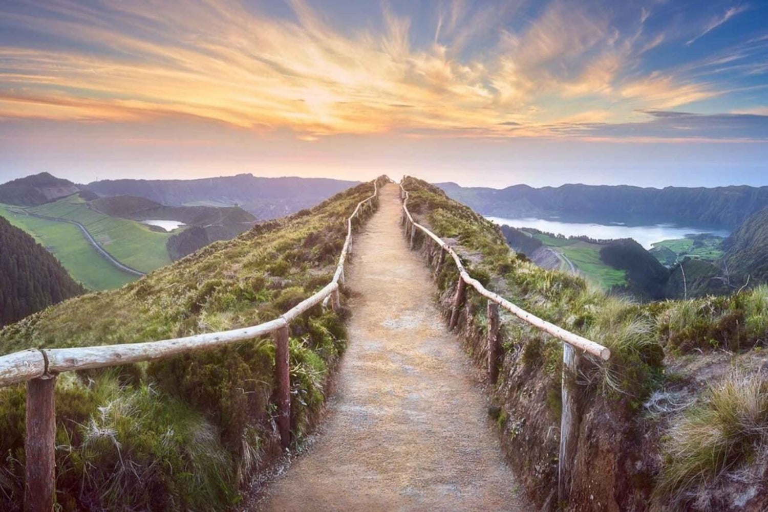 Wir schließen am berühmten Aussichtspunkt Vista do Rei ab, der dafür bekannt ist, den berühmtesten Ausblick Portugals zu bieten: die Perspektive der Grünen und Blauen Lagunen, einer der Höhepunkte jedes Besuchs auf den Azoren.