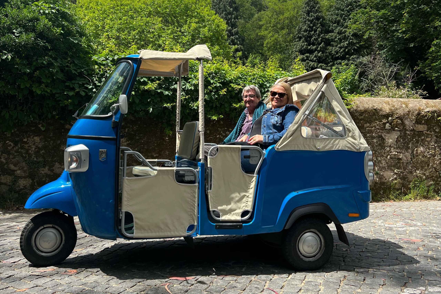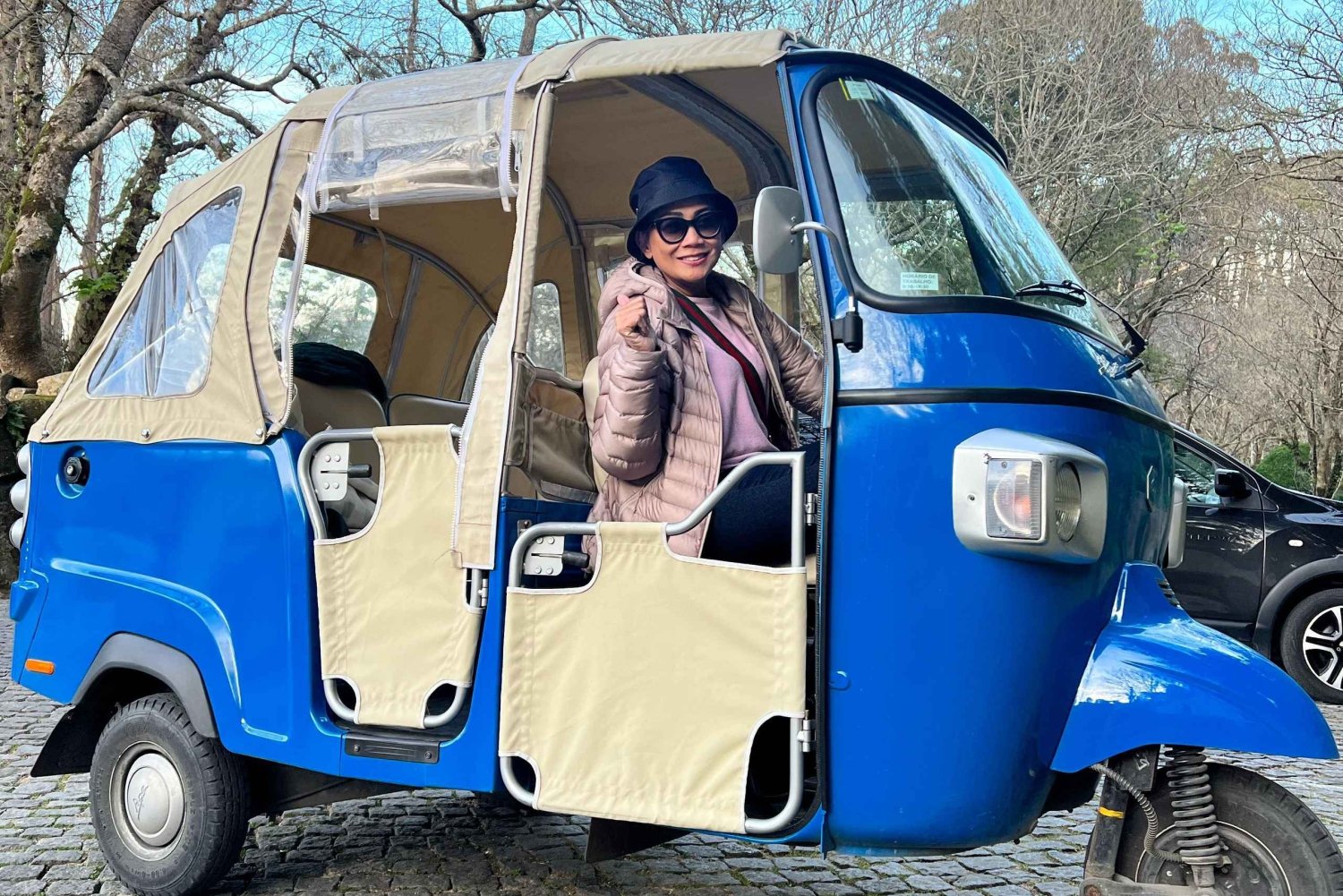 Entdecke die wichtigsten Sehenswürdigkeiten des Dorfes Sintra in einem Piaggio Ape Calesino 200, dem berühmten Tuktuk. Wunderschöne Landschaften, Geschichte und eine Menge Spaß bei dieser 1-stündigen Tour durch die Stadt.