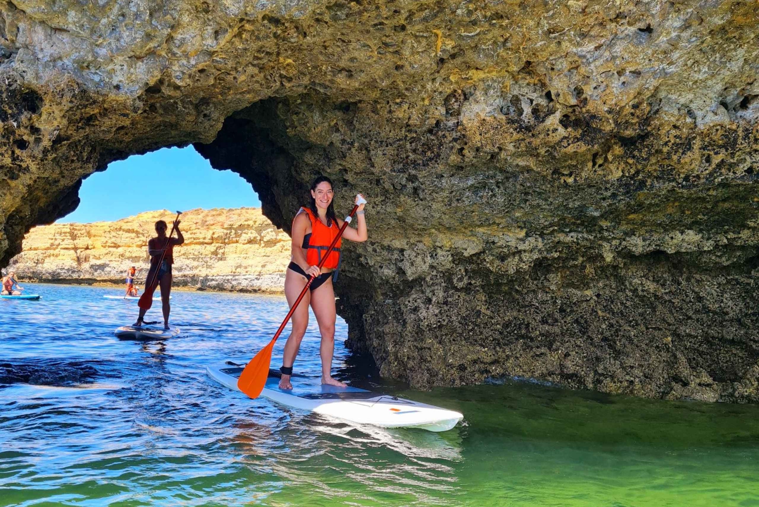 Disfruta de un tour de paddle surf en el Algarve. Aprenda a hacer surf de remo, descubra la costa y las cuevas de Albufeira, explore las playas, tome fotos y relájese en el entorno sereno.