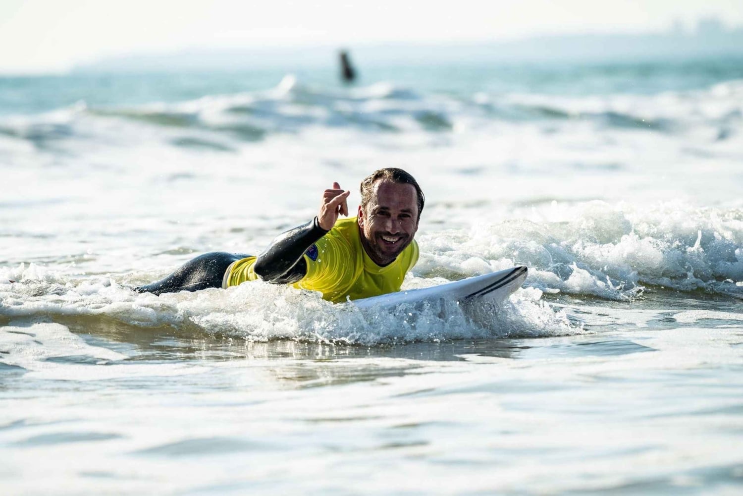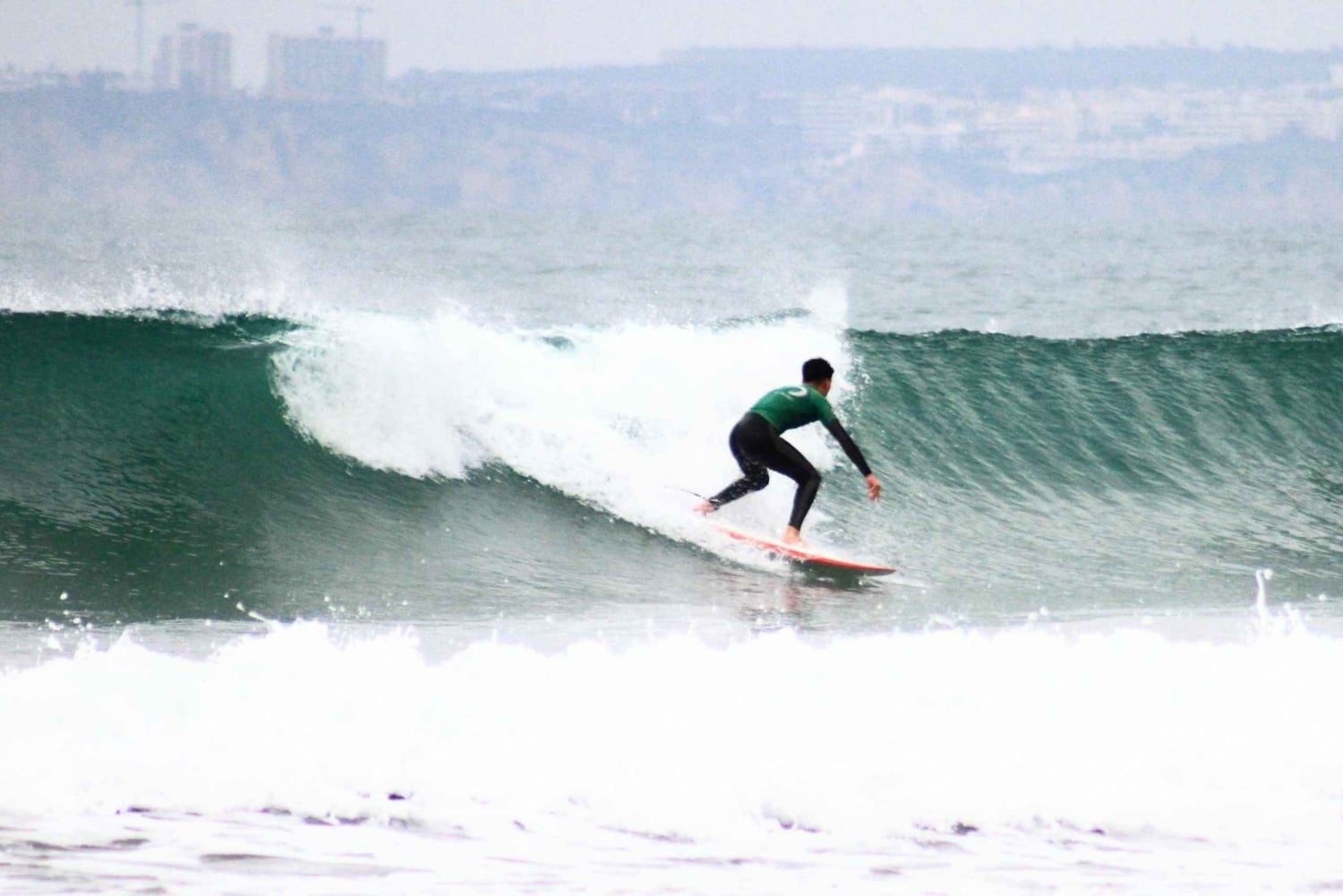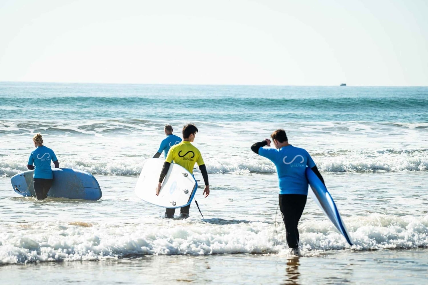 Embárcate en una emocionante aventura de surf en la costa del Algarve. Únete a un cautivador viaje de surf de 3 horas que trasciende lo ordinario y entra en el reino de lo extraordinario. Te espera una sinfonía de tablas de surf, gaviotas y conchas marinas, perfectamente sincronizada con el ritmo del océano.
