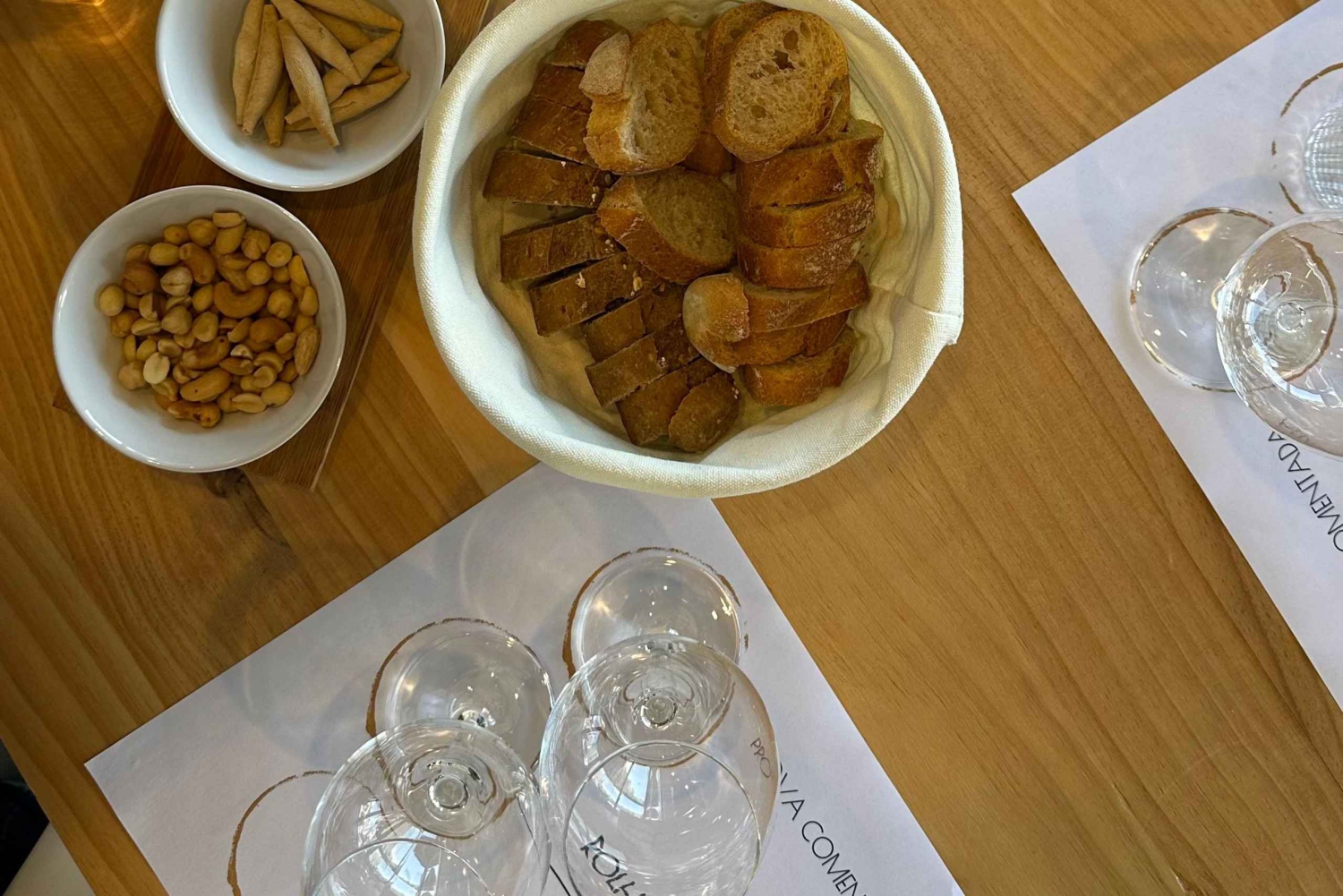 La experiencia incluye pan portugués, aceite de oliva gourmet y una variedad de aperitivos salados ligeros (como frutos secos, galletas saladas y chips). Por un suplemento, puedes añadir una tabla tradicional de embutidos y quesos, disponible bajo petición. Si buscas una experiencia enológica relajada, educativa y auténticamente local en el Algarve, esta es la opción perfecta.