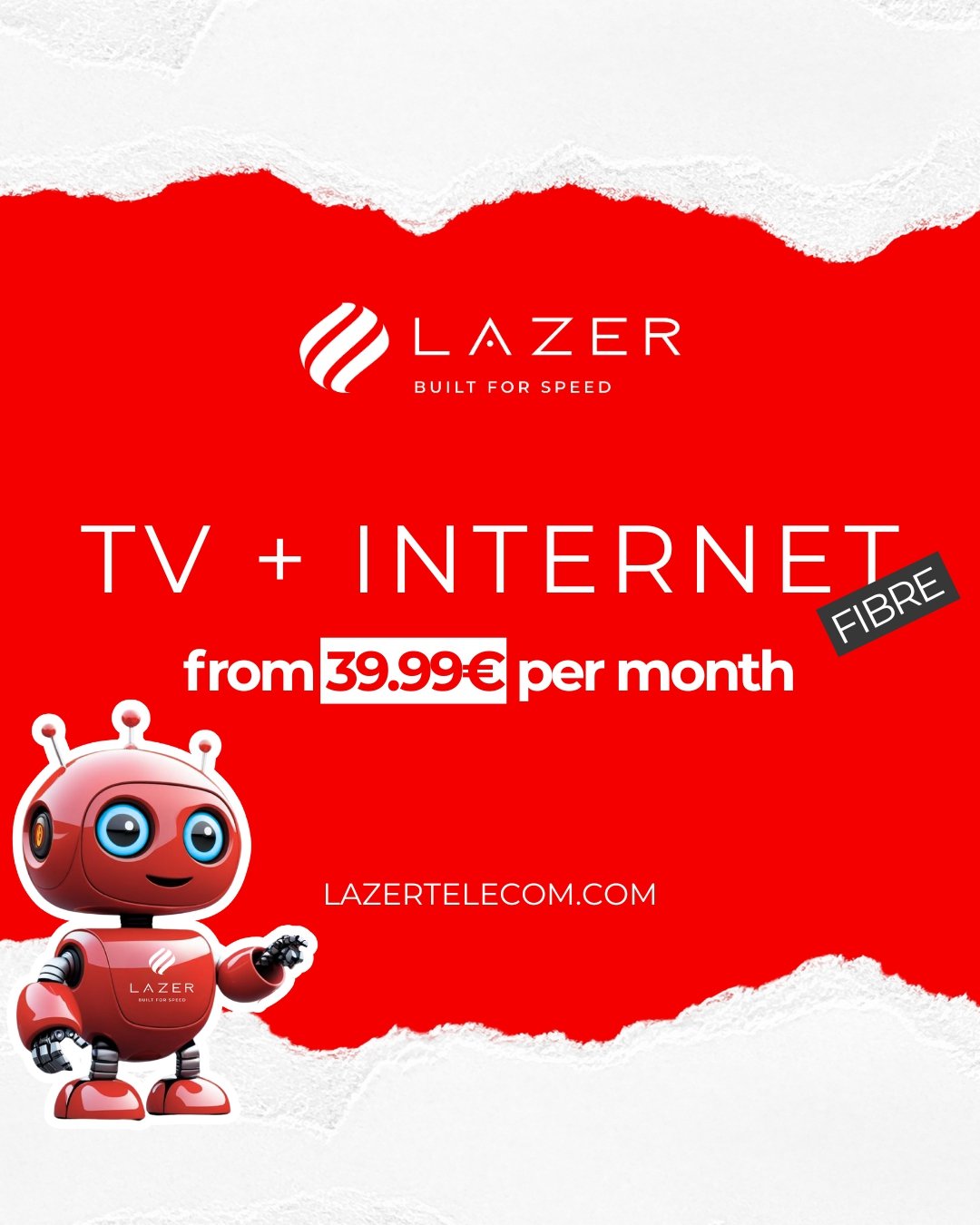 Lazer - Construido para la velocidad - es la red de fibra óptica más rápida del Algarve. Durante más de 35 años, su misión ha sido garantizar que los residentes y negocios del Algarve siempre estén conectados a lo que es importante para ellos.Lazer facilita la conexión a Internet, con paquetes flexibles y un proceso de registro sencillo. Sus planes de Internet con velocidades de hasta 1 Gbps le permiten disfrutar de velocidades de Internet súper rápidas. Además, el equipo de soporte técnico siempre está disponible gracias a su equipo de soporte técnico.