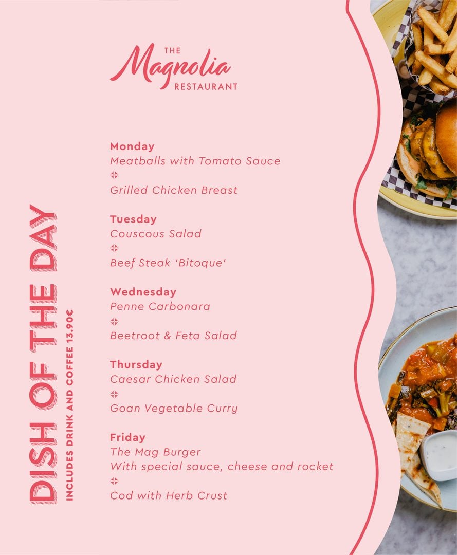 There is a new dish of the day every day (keep an eye on The Magnolia Hotel instagram for details) and the special lunch menu includes a drink (non-alcoholic) and coffee.