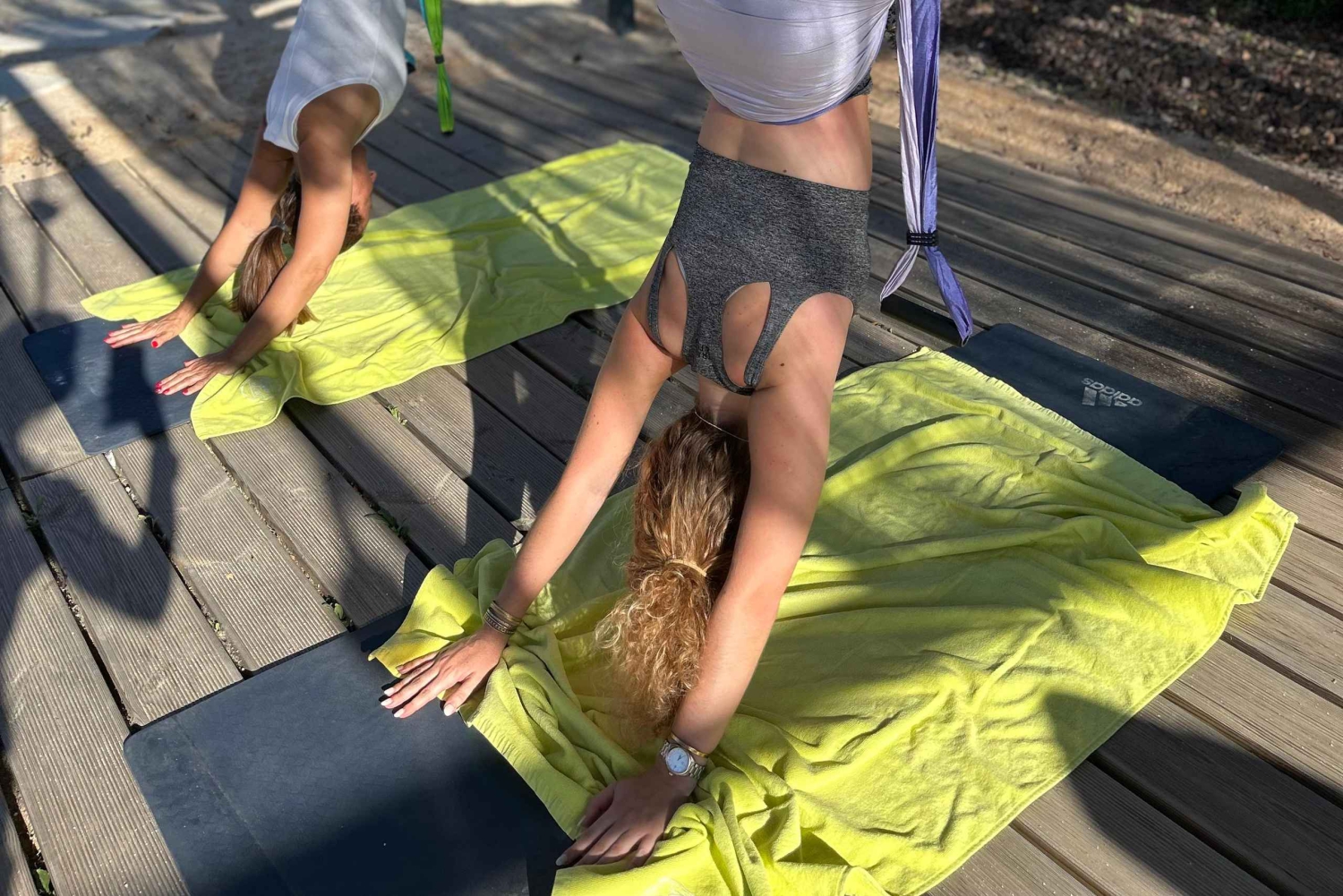 - Practice Vinyasa flow and Yin yoga, and try the Yoga Trapeze for deep stretching