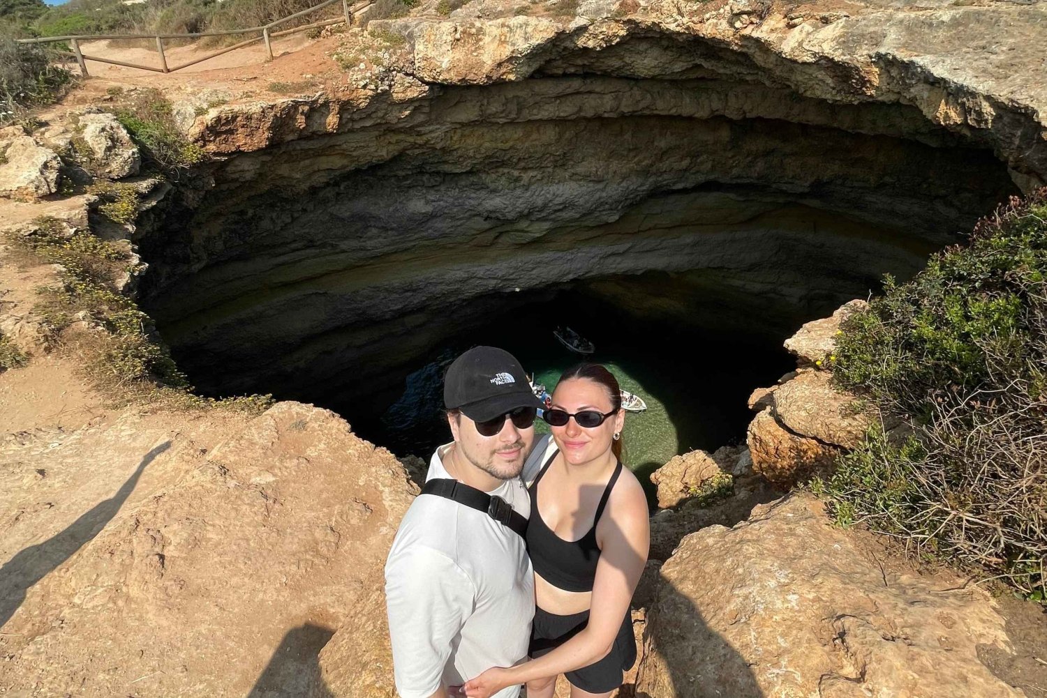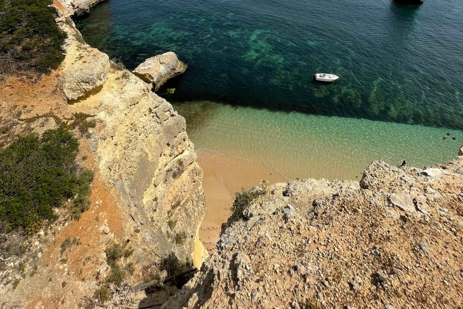 The tour kicks off at Praia da Marinha, where you can admire the iconic golden coast and the natural arches that make this beach one of the most photographed in the world. Walking along the trail, you'll pass by panoramic viewpoints, ideal for photographs, and we'll reveal local secrets about the region's geology, flora, and fauna.