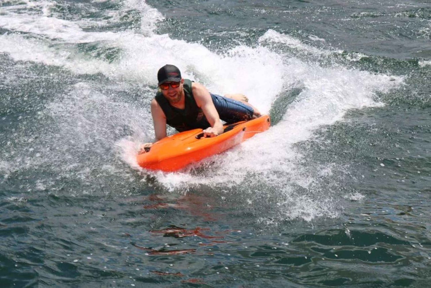Embark on an exhilarating journey from Lagos, where your captain will guide you to secret beaches, hidden coves, and some of the Algarve's most breathtaking coastal gems. To make your experience even more special, you'll have access to two paddleboards to explore secluded waters and stunning sandy shores. And for the explorers at heart, we provide snorkelling masks for a deeper dive into the vibrant underwater world.