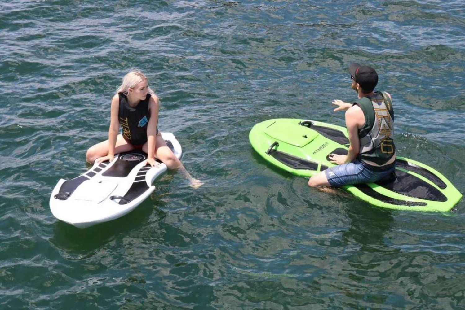 The board comes with one fully charged battery and the option to rent a second battery for extra fun!