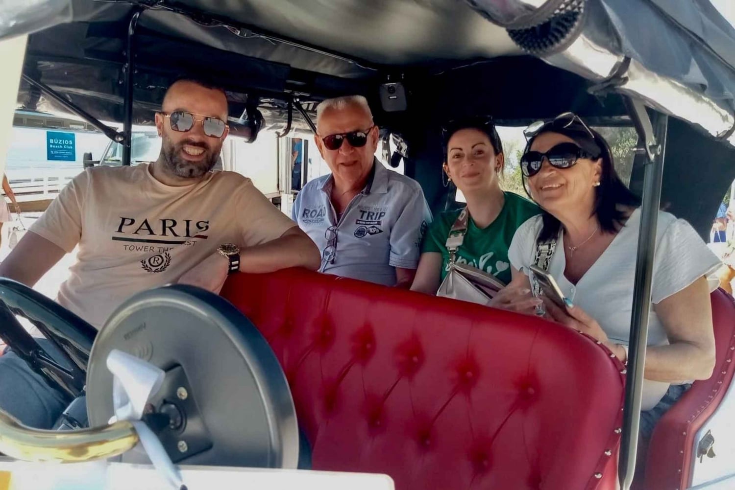 Embark on a captivating journey through Vilamoura, exploring the magnificent beaches of Falésia, Praia da Marina, among others and enjoy the landscapes of the golf courses, Vilamoura Marina, through this ecological classic car (100% electric).
