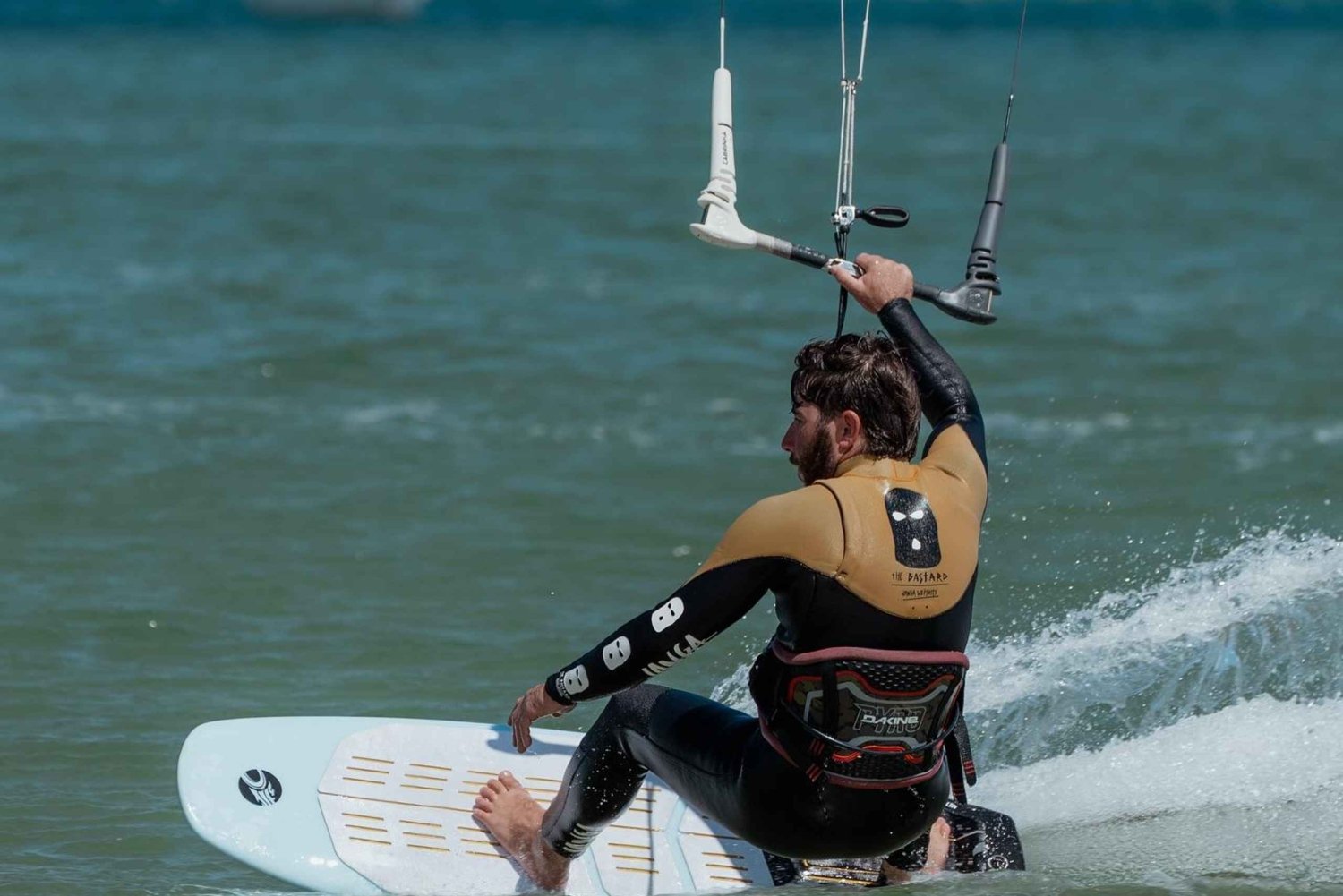 This is when you try the board for the first time. When you are confident in handling the kite and entering the water, you will use the kite with one hand, put on the board and take your first turns. Even if you fall, you'll know how to drag your body back onto the board and start again. Your instructor will guide you during your first attempts, with the aim of getting you to walk safely and independently. Upon completion, you will receive IKO Level 2 certification and be ready for upwind riding lessons or supervised rentals if you are self-employed.