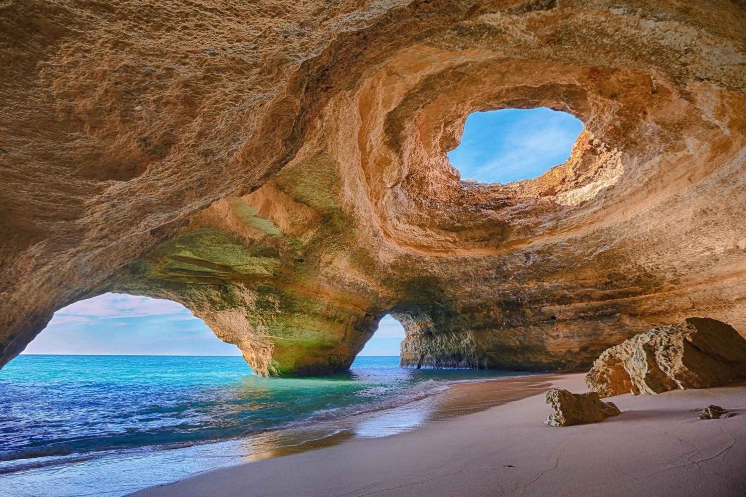 ✳️ Portugalin ikonisimpaan luolaan, jossa on dramaattinen kattoikkuna ja turkoosit vedet.