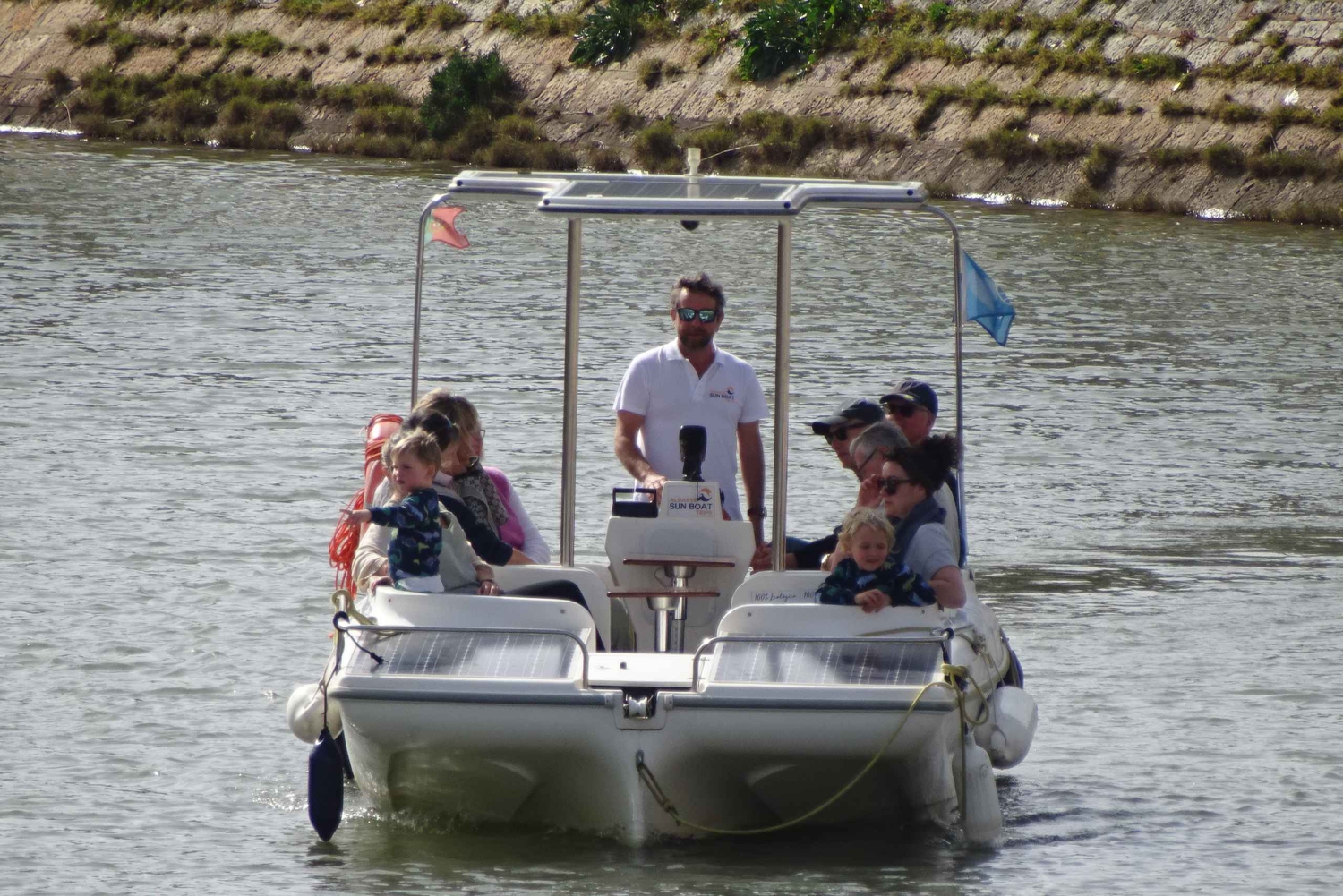 Tutustu kauniiseen Arade-jokeen rentouttavassa ympäristöystävällisessä aurinkoenergialla toimivassa veneessä.