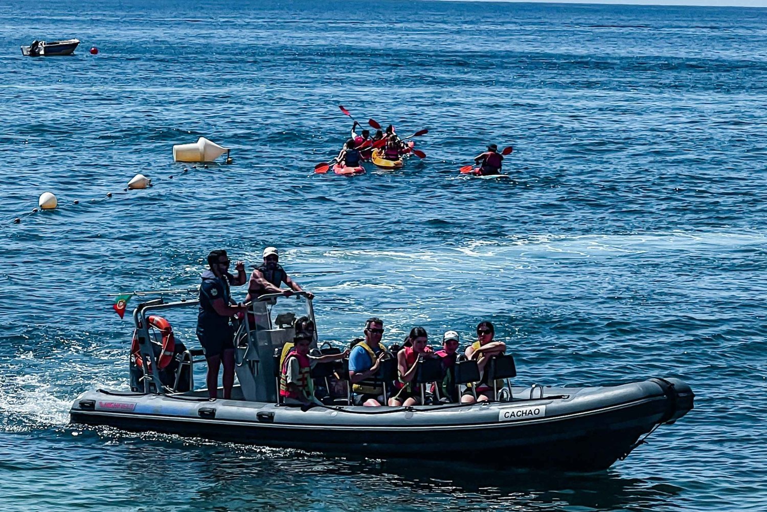 Si la mer est calme, vous pourrez vous arrêter pour vous rafraîchir dans les eaux cristallines. Sur le chemin du retour, en passant par Albufeira, vous serez peut-être surpris par des dauphins espiègles ou, en de rares occasions, apercevrez une baleine, rendant votre expérience vraiment inoubliable (non garanti).