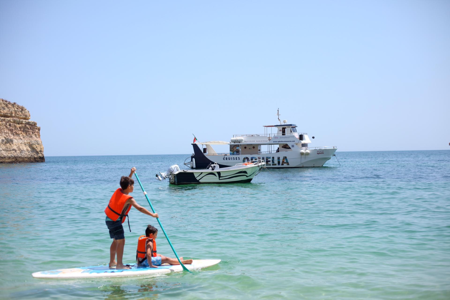 L'Ophelia est un grand catamaran confortable. Très stable dans l'eau, l'Ophelia possède un salon intérieur, des ponts ombragés et des ponts ensoleillés. Vous pouvez embarquer à bord de l'Ophelia (départs de Portimão) et profiter de balades le long de la côte, pour voir les célèbres grottes et grottes et peut-être même repérer des dauphins. Ou optez pour une expérience marine rapide à bord de l'Explorer qui longe la côte jusqu'à la célèbre grotte de Benagil avant de partir en mer à la recherche de dauphins sauvages.
