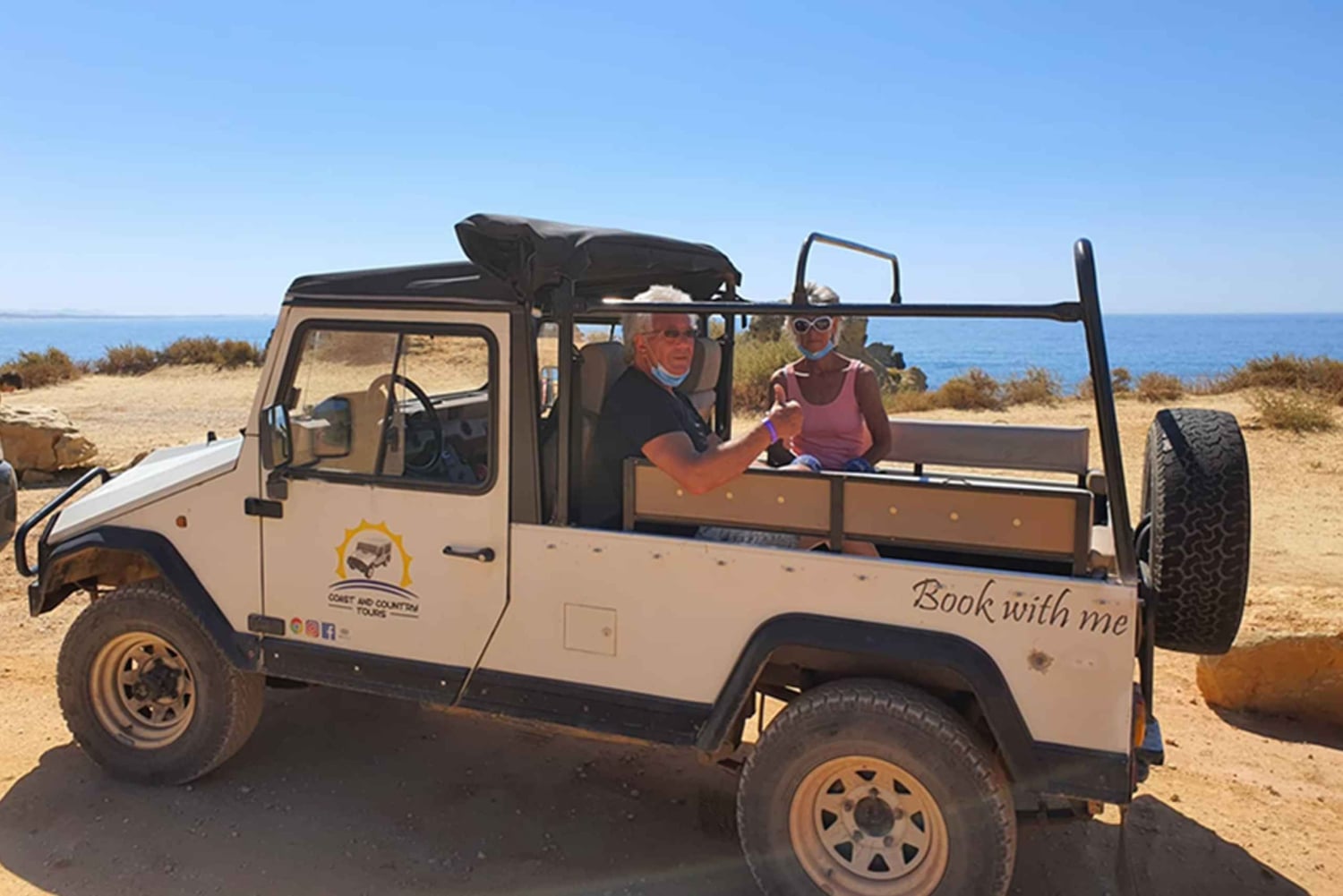 Scopri il fascino di Albufeira in un tour guidato in jeep. Visita le spiagge della costa occidentale di Albufeira come Praia do Castelo, Praia dos Arrifes e Praia da Galé. Ammira i panorami della città vecchia e scopri la storia locale mentre vedi le antiche rovine arabe.