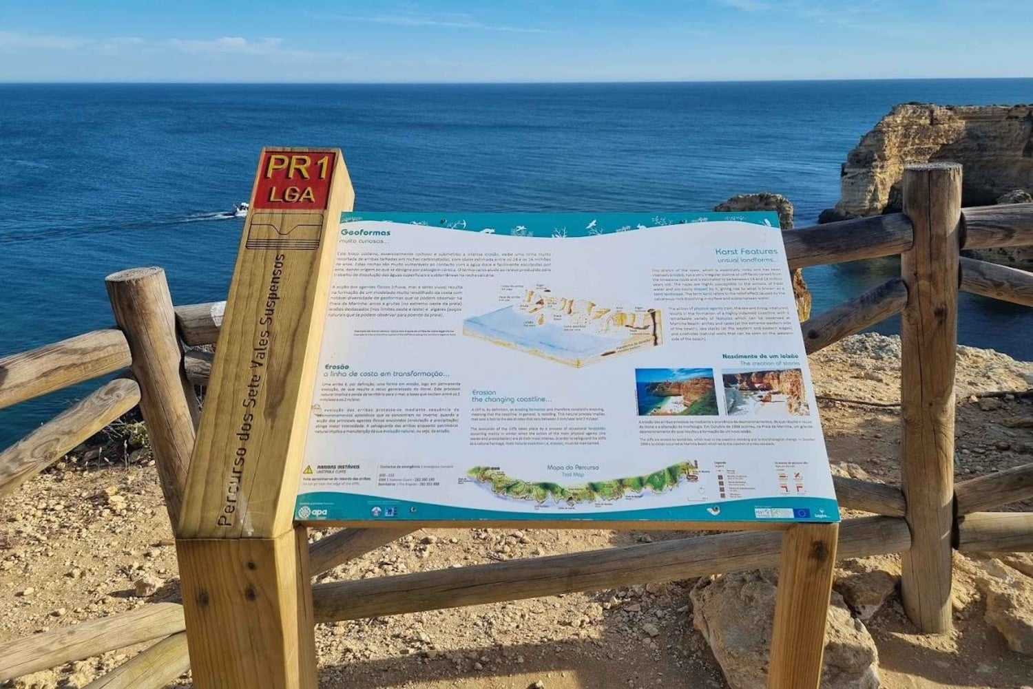 L'azione delle acque dolci e salate crea un motivo sulla costa, noto come paesaggio carsico, con una notevole diversità di geoforme che si possono vedere a Praia da Marinha: archi, grotte, doline e secche.