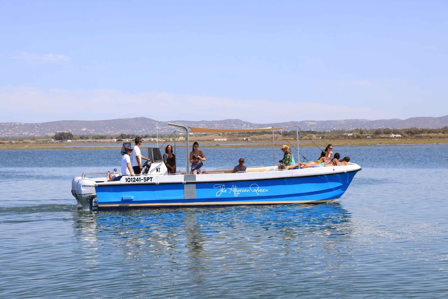 Dopo aver incontrato l'equipaggio e salito a bordo del catamarano 'The Algarvian Queen', riceverai un briefing e salperai per un viaggio interessante lungo le acque riparate della laguna. I canali tra le paludi offrono panorami magnifici e una varietà di uccelli. Il primo punto di interesse è l'isola di Barreta, conosciuta anche come 'Isola deserta', un'isola barriera situata nel punto più occidentale del Parco Naturale di Ria Formosa.