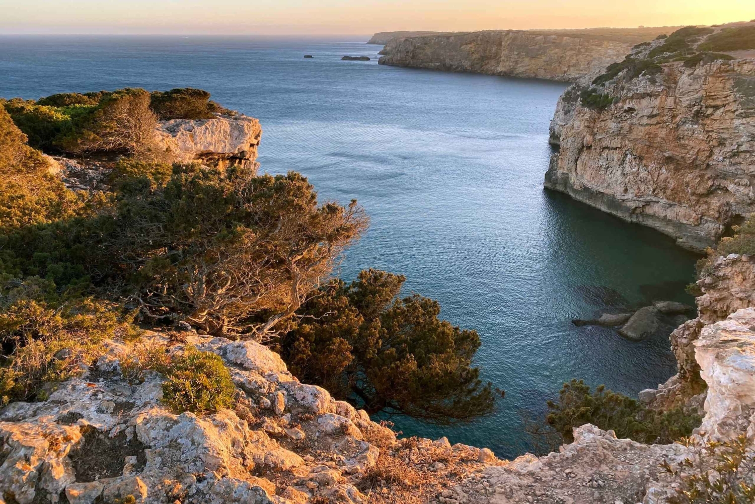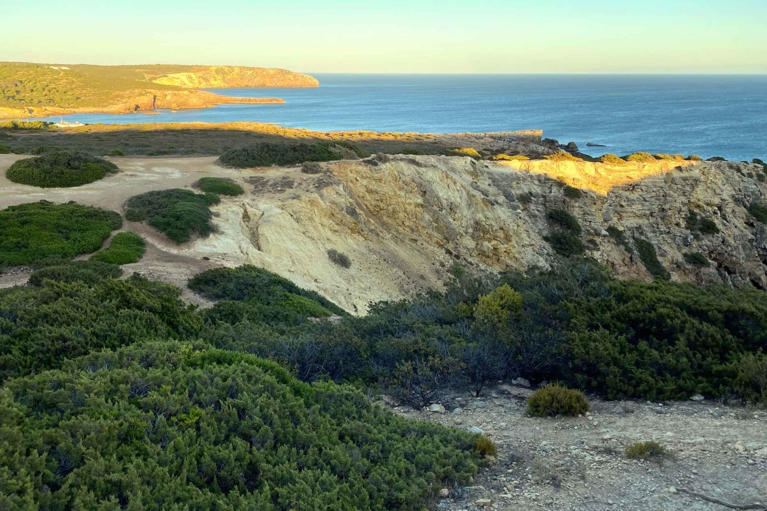 まずは、高い石灰岩の崖に囲まれたビーチ、プライア・ド・ザヴィアルからスタートします。この崖には、波と風によって形作られた地質学的な歴史が重ねて見られます。そこからは、険しい海岸線の小道を西へと進みます。手つかずの自然が残るこの地形では、広大な景色と、何世紀も変わらない風景の中を歩く感覚を味わうことができます。