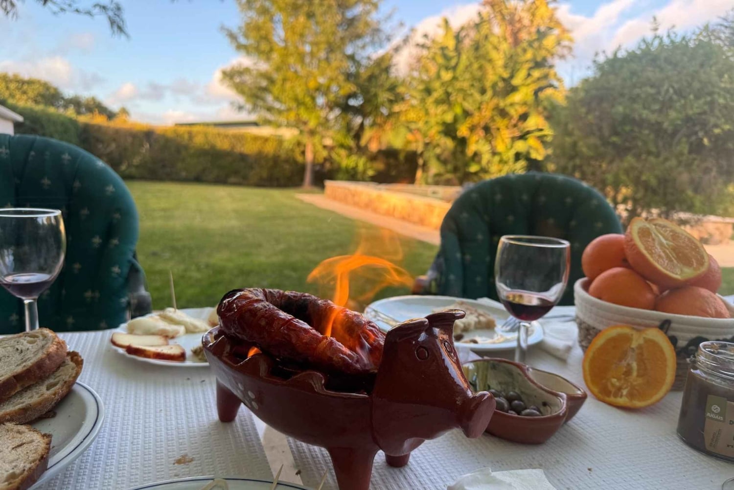 プライベートガーデンでアルガルヴェの高級食材を試食していただけます。地元のタパス、グリルしたチョウリソ、伝統的なエスカルゴ、さらにワインと一緒にメドローニョ/メロサをお試しください。