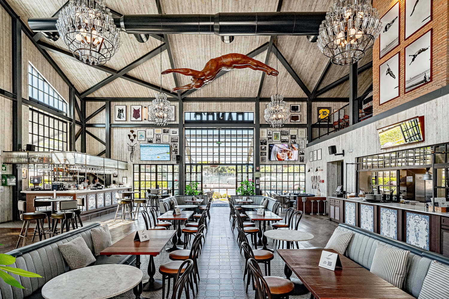 Portuguese tiling details and some vintage sports touches. Don't forget to look up - all eyes are drawn to the magnificent