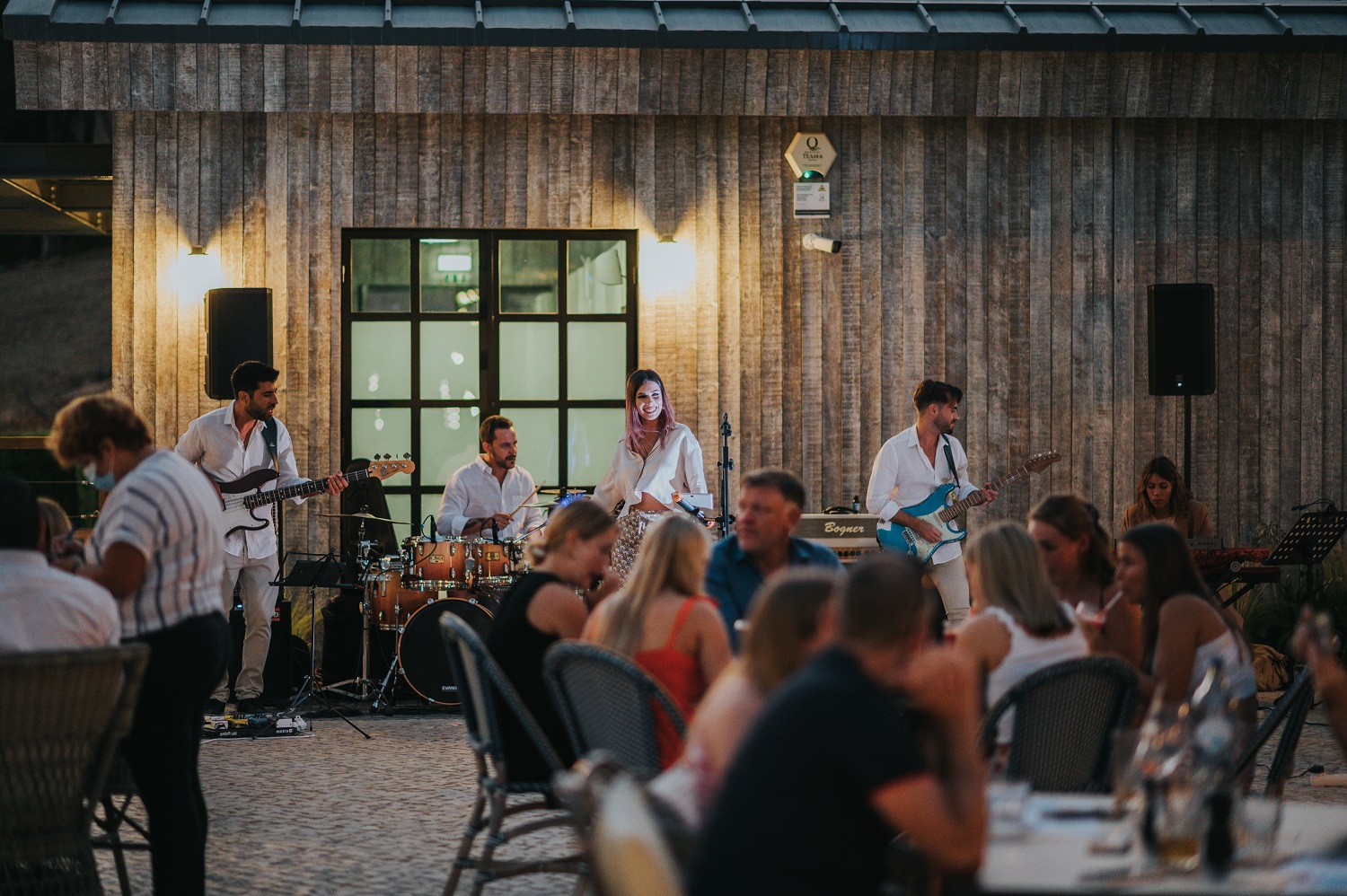 outdoor terrace that overlooks the padel and tennis courts of The Campus. There is an adjacent