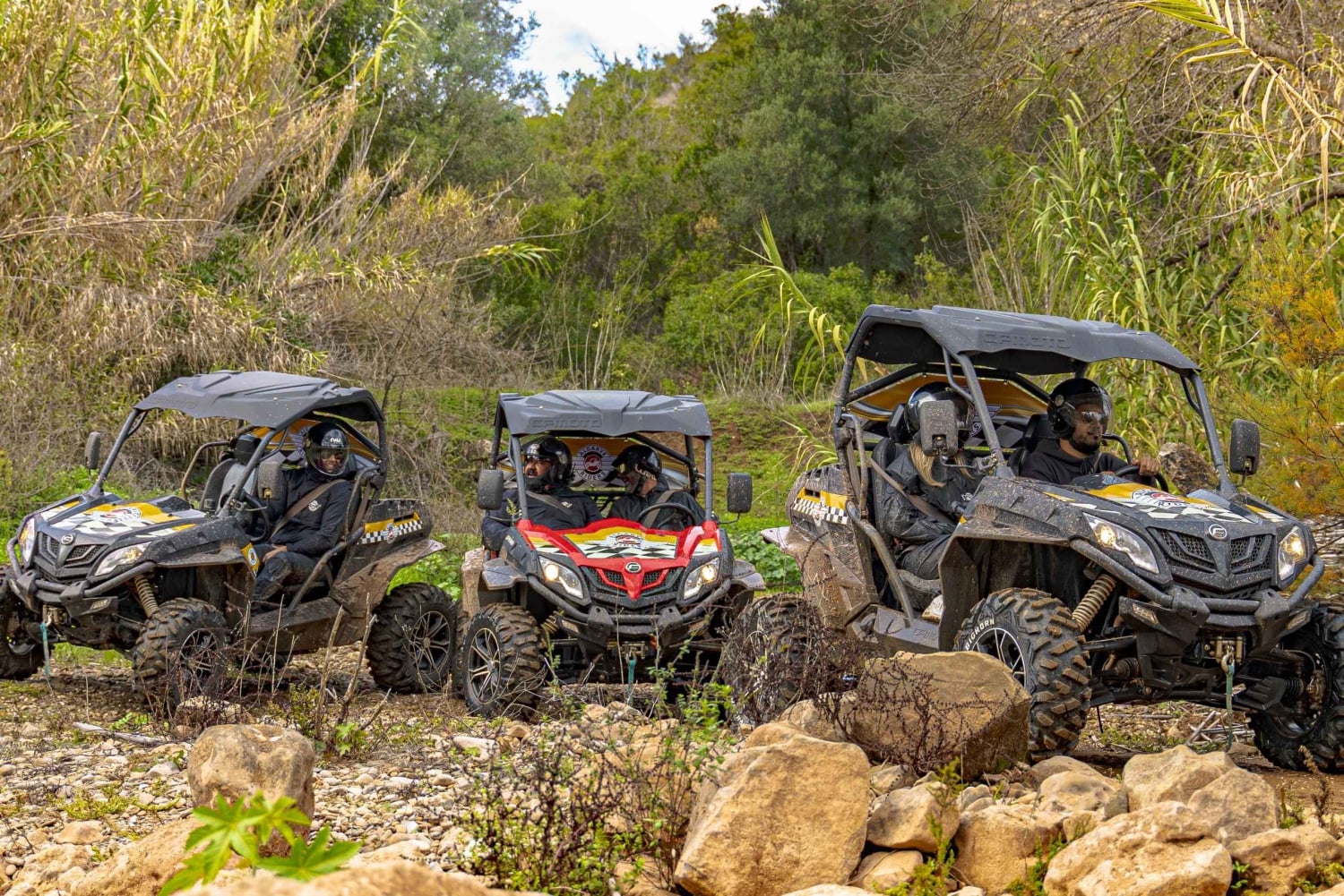 Berijd off-road met een buggy en ontdek de mooiste verborgen schatten van de Algarve: pittoreske traditionele dorpjes, sinaasappelboomgaarden, kurkeikenbossen, bezoek aan een kasteel en nog veel meer. De panoramische uitzichten zullen uw verwachtingen verbazen langs heuvels en valleien, en uitdagingen voor alle rijniveaus. De lunch vindt plaats op Quinta do Freixo (een prachtige boerderij met een oppervlakte van ongeveer 800 ha), gelegen in het hart van de Algarve en is gewijd aan activiteiten variërend van landbouw en veeteelt tot de productie van traditionele producten en plattelandstoerisme. Het hele gebied is biologisch gecertificeerd. Deelnemers krijgen hier de kans om heerlijke jam te proberen met de volgende smaken: pompoen, vijg, sinaasappel, pompoen met amandel, groene tomaat, abrikoos, tomaat en daarna genieten van een fantastische lunch met traditionele gerechten (ook vegetarische opties). Als de deelnemers een van deze producten (jam en likeuren) willen kopen, kunnen ze dit tijdens de stop direct op de boerderij doen, wat altijd een geweldig souvenir is om familie en vrienden thuis te verrassen.