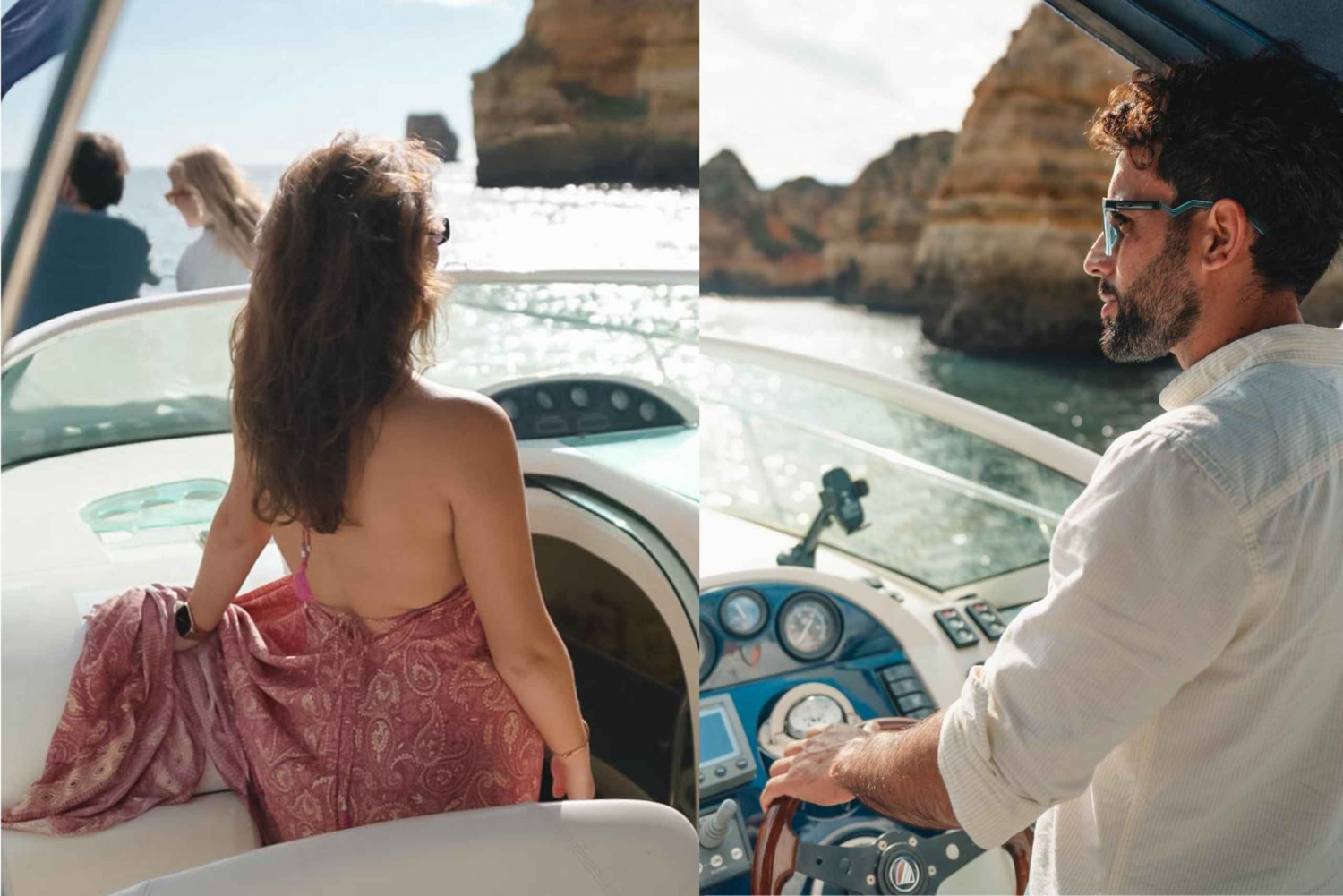 Onze 'Nave' (etymologische oorsprong van boot) vertrekt vanuit de prachtige jachthaven van Lagos, waar je gratis kunt parkeren en waar toiletten en winkels zijn. De route gaat langs de boulevard, de gemeentelijke markt en het historische centrum. De rondvaart begint bij de stranden Praia dos Estudantes, Pinhão, Dona Ana, Camilo en Porto de Mós, maar je kunt er ook voor kiezen om direct voor anker te gaan bij verlaten stranden of op zee.