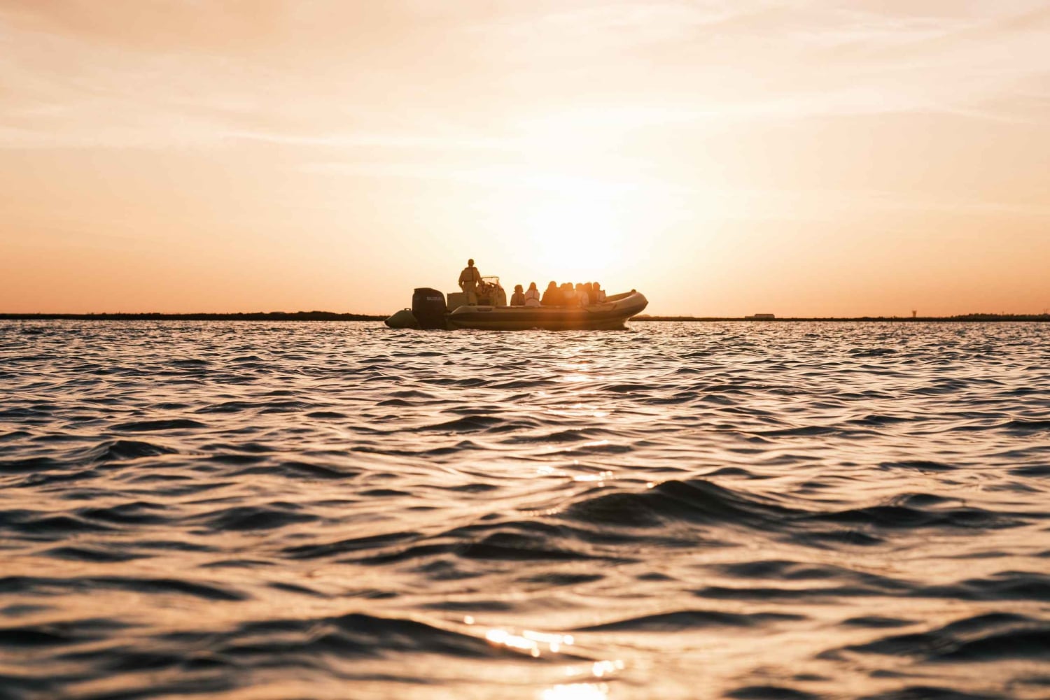 Een boottocht van 1 uur met gids bij zonsondergang door Ria Formosa.