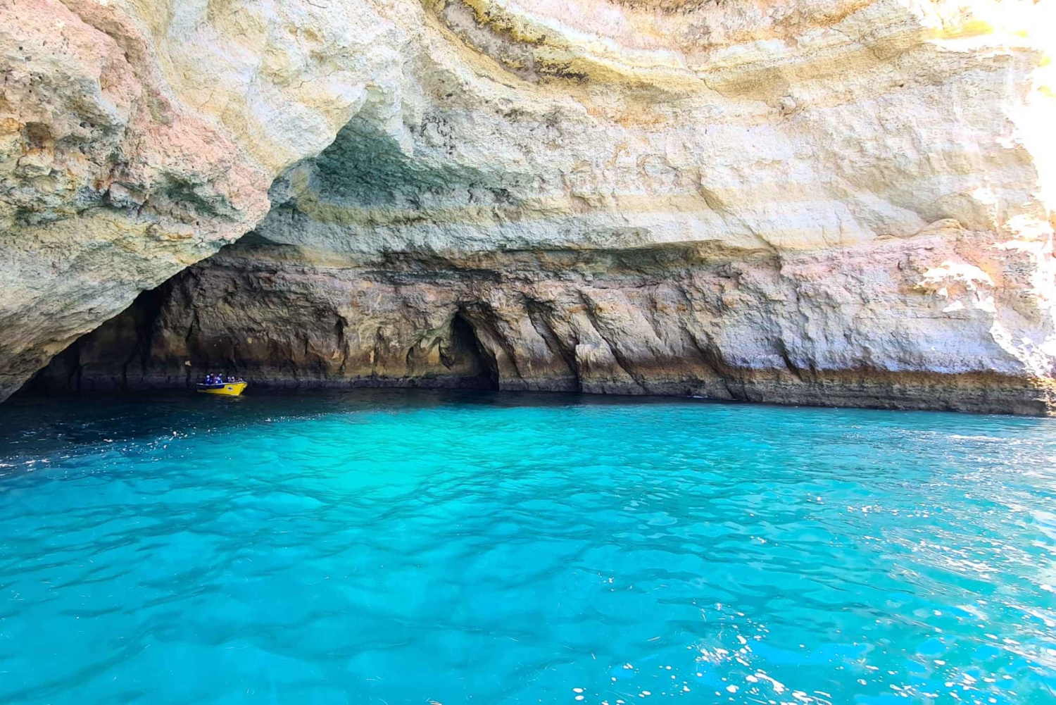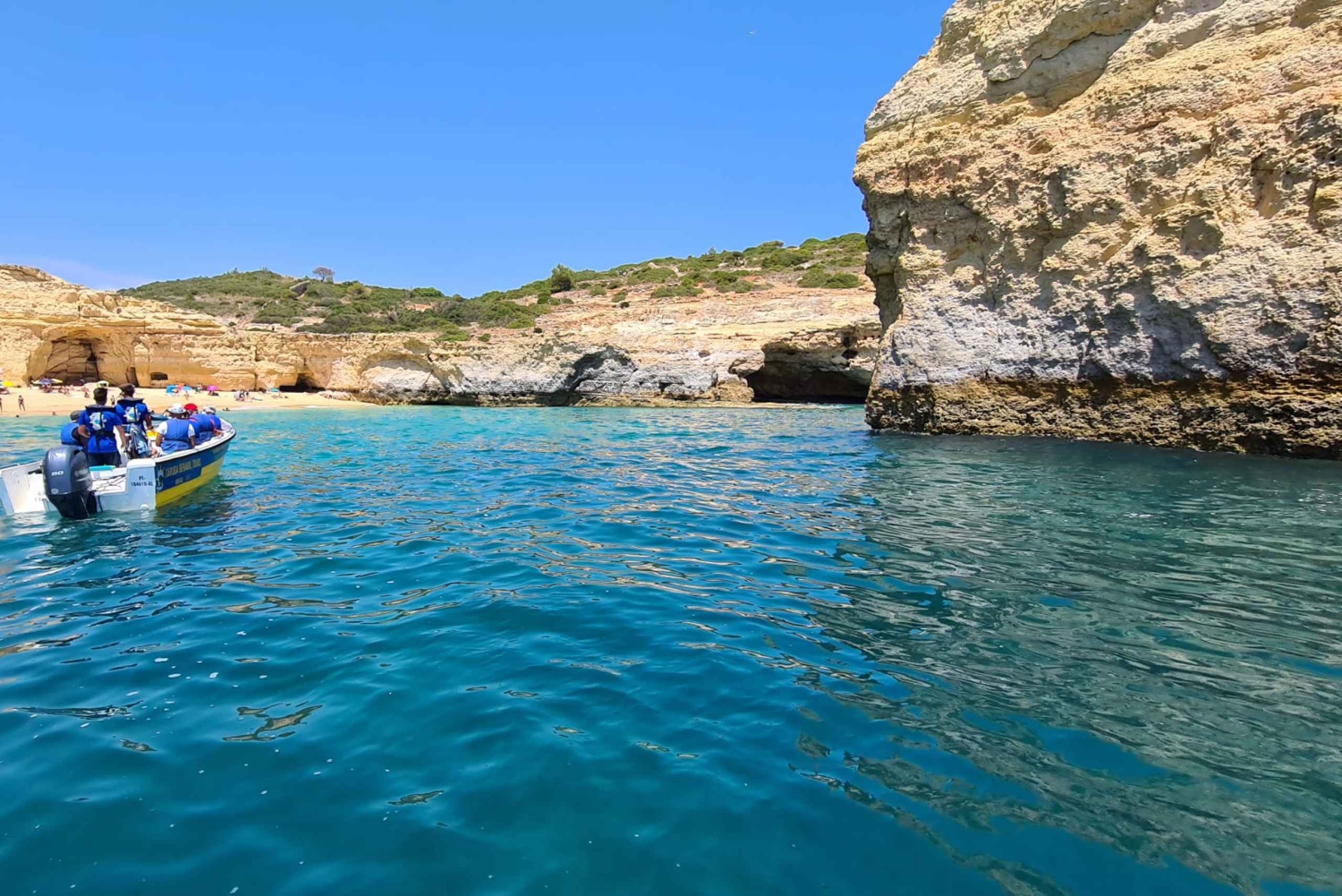 Vertrek vanaf Benagil Beach en vaar langs de kustlijn. Ontdek meer dan 15 verschillende grotten langs de kust, evenals een zwaluwgat en verschillende afgelegen stranden zoals Carvalho Beach en Marinha Beach.