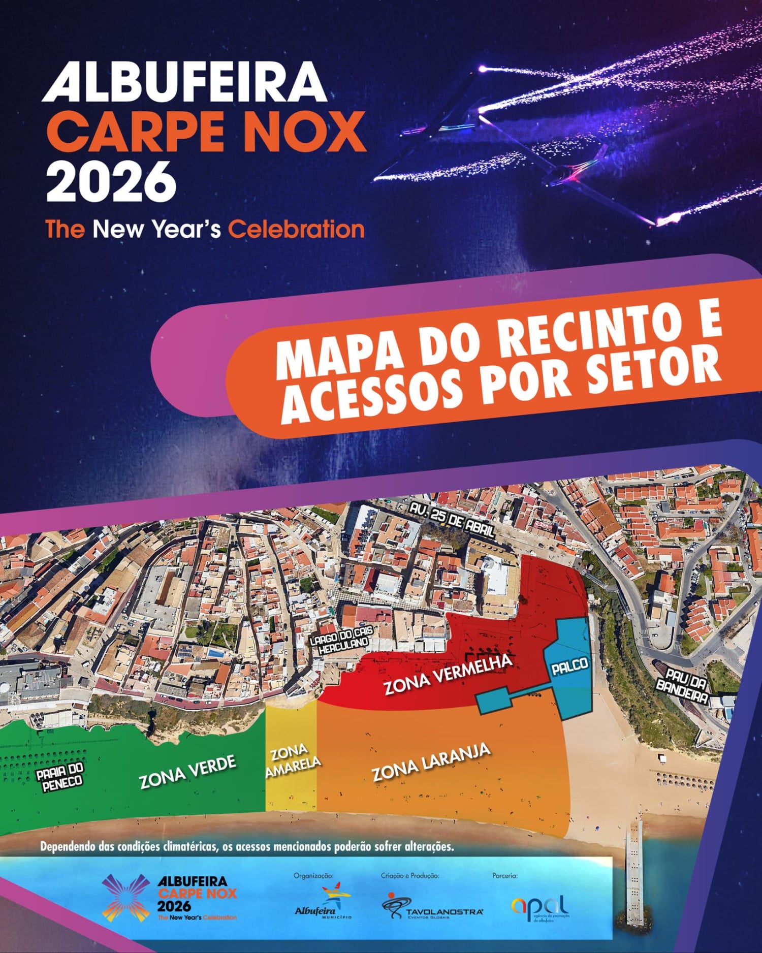 Hvordan kan jeg komme til de forskjellige sonene på Albufeira Carpe Nox 2025/2026?