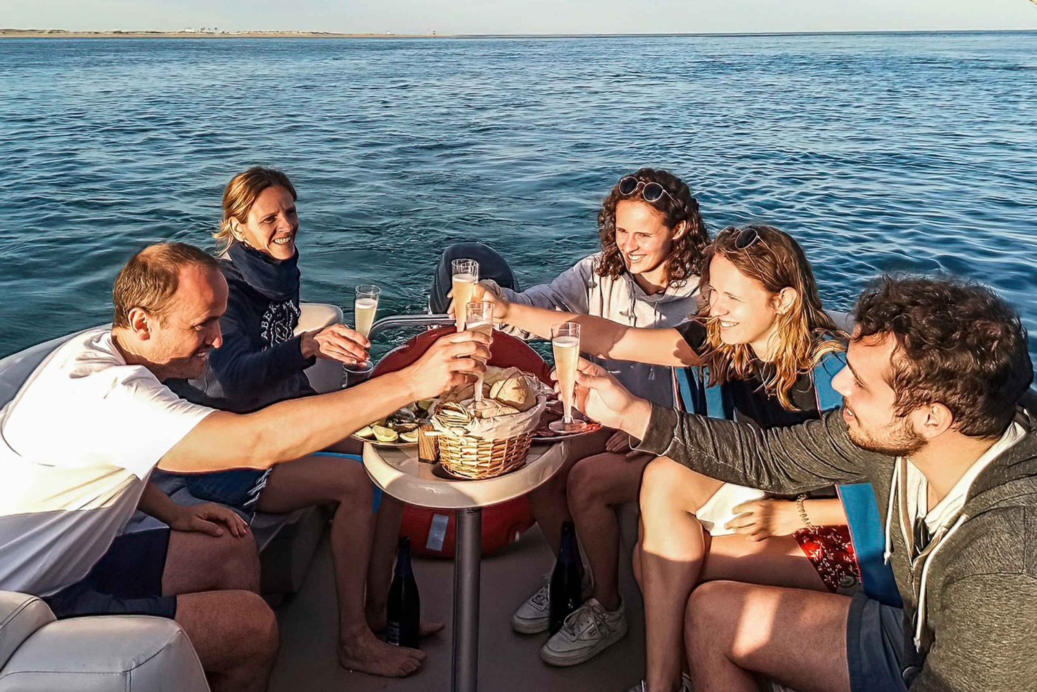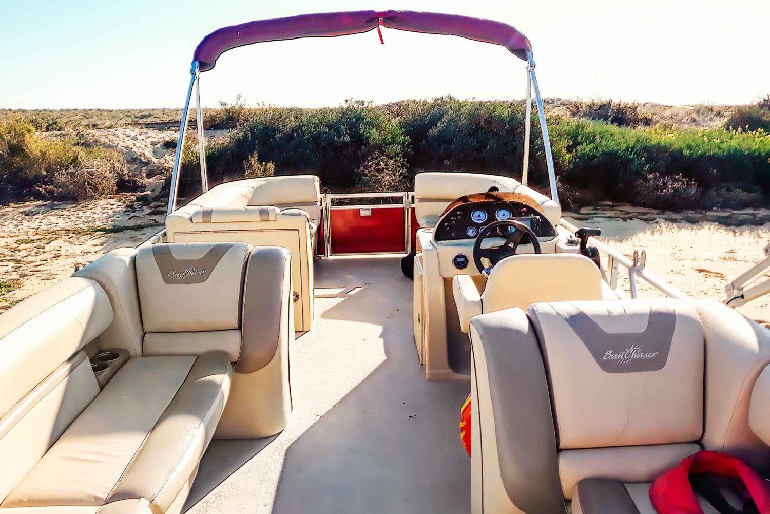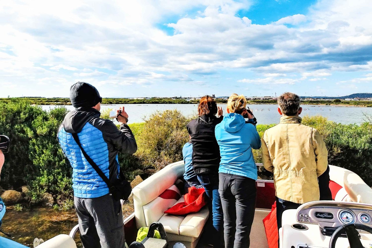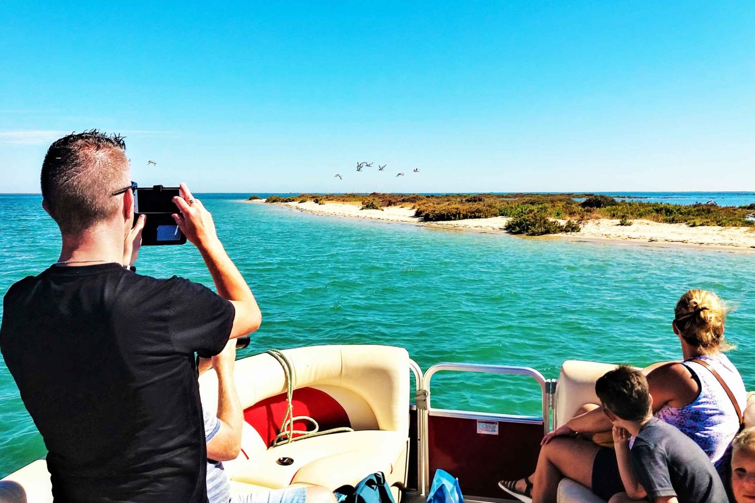 Seil til den vakre naturparken Ria Formosa med privat båt fra Faro. Turen følger Ria Formosa-kanalene og inkluderer stopp ved øyene Farol og Deserta.