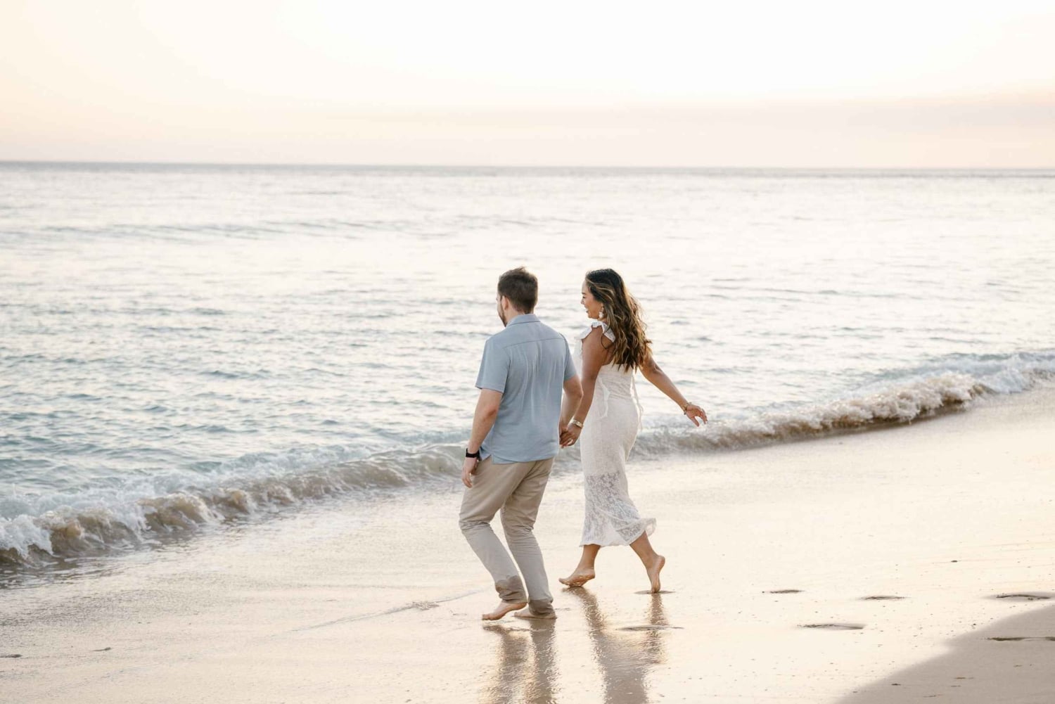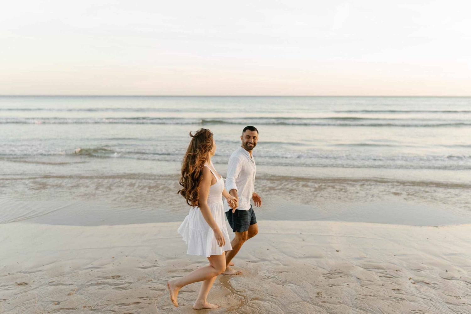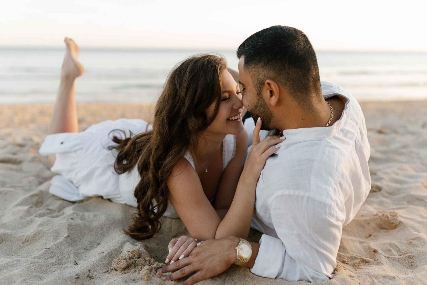 - Forslag til antrekk: Vær oppmerksom på to ting: estetikk og komfort. For balanserte, vakre bilder anbefaler jeg at du kler deg i samme stil og lignende farger. For en strandfotografering er beige, blått, rødt, hvitt og grønt (naturlige og rolige) mer komplementære farger. Ikke bland dem sammen; prøv å velge to som vil være i antrekket ditt. Du kan for eksempel ha på deg blå jeans og en beige skjorte eller T-skjorte osv. Siden du skal ha det gøy på stranden, bør du ta på deg behagelige klær slik at du ikke blir stresset og kan bevege deg lett. De mest naturlige og morsomme bildene er de der dere ikke bare poserer, men oppfører dere naturlig som dere ville gjort på stranden sammen.