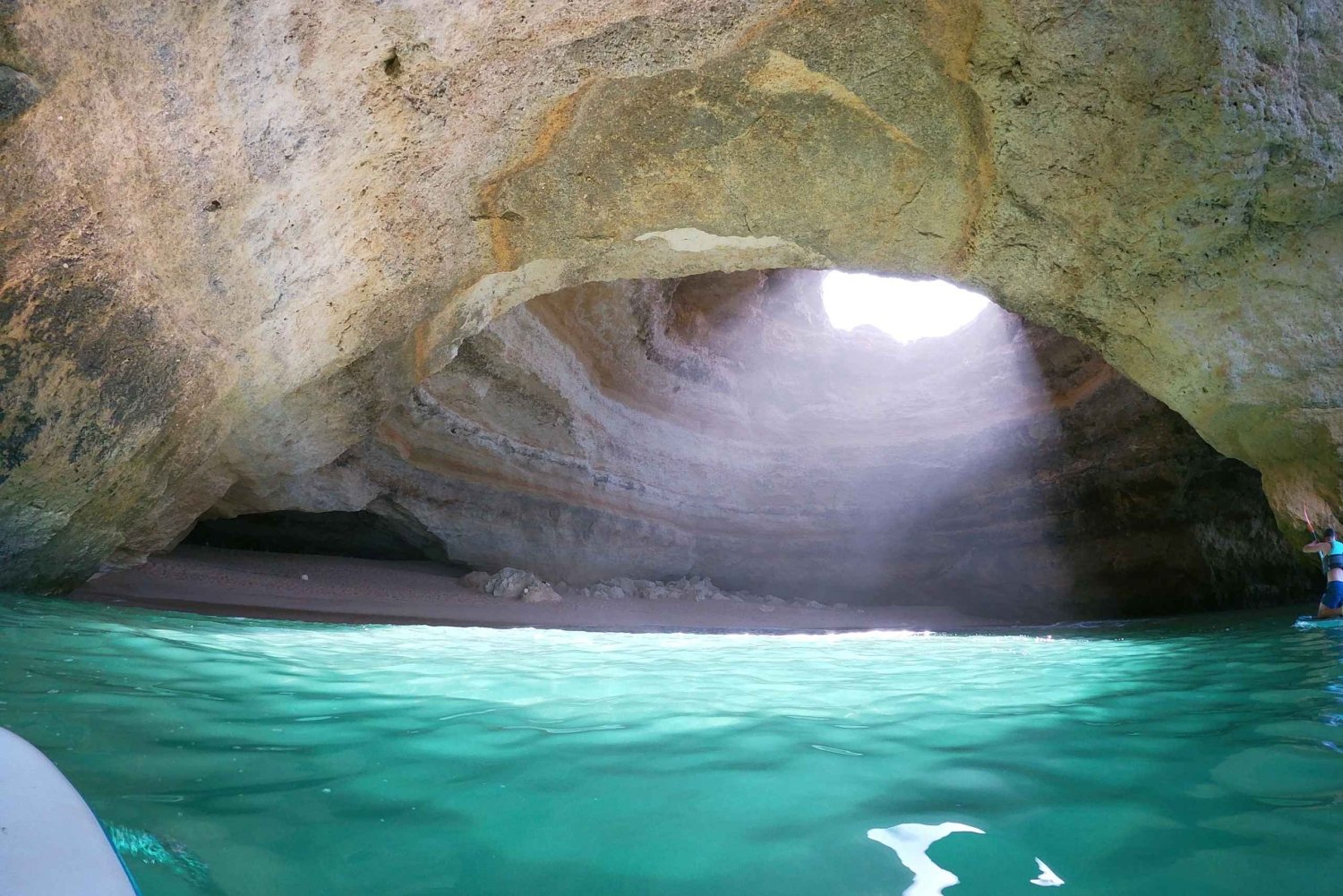 Legg ut på en båttur ledet av lokale guider, nøye utformet for en unik opplevelse. Gå utover Benagil-hulen, utforsk forskjellige andre grotter og, mest omfattende, besøk Marinha-stranden med sine berømte buer.