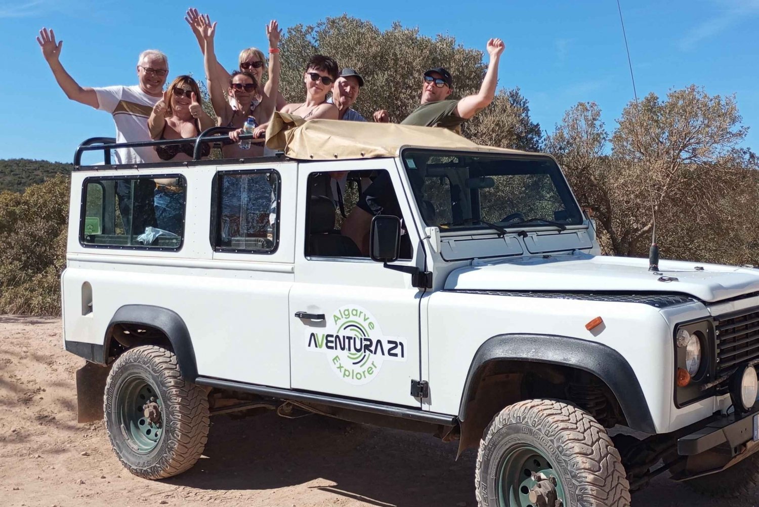 Wycieczka jeepem o zachodzie słońca. 3 godziny. Wycieczka terenowa samochodem 4x4 i kieliszek orzeźwiającego wina (w cenie). Odkryj wiejskie tereny Algarve. Przygoda, fotografia, krajobrazy i natura.