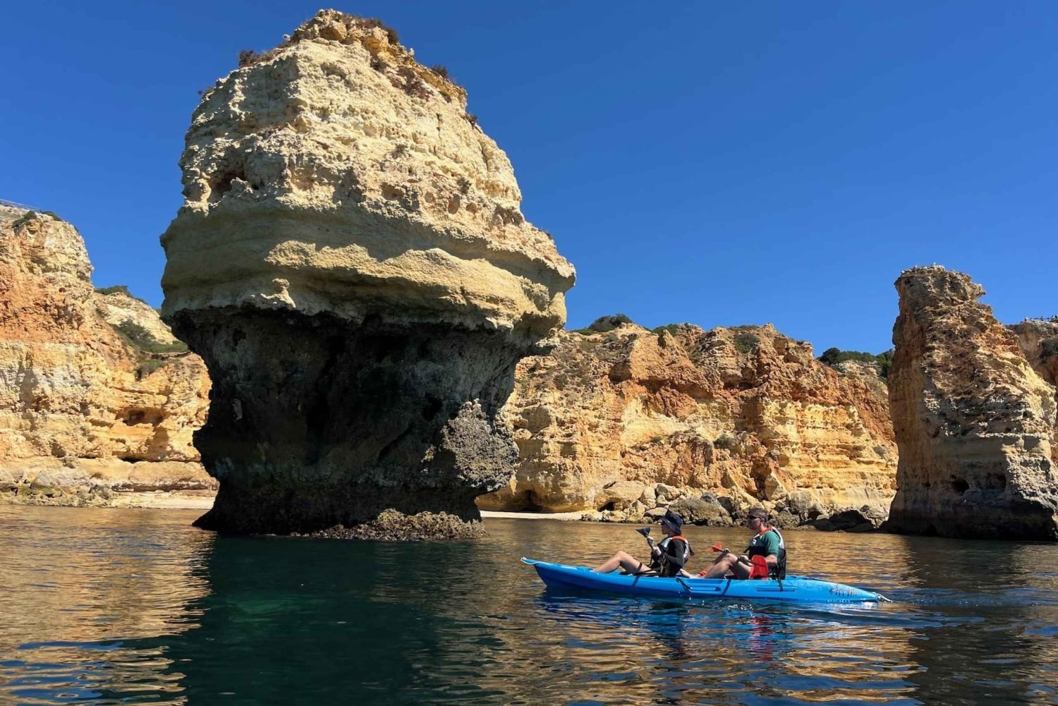 Całkowita długość trasy wynosi około 5 km, więc przygotujcie się na mały trening! WAŻNE INFORMACJE: - Wycieczka rozpoczyna się i kończy w tym samym miejscu, na plaży Albandeira. - Dysponujemy kajakami dwuosobowymi i jednoosobowymi. Kajaki jednoosobowe są zazwyczaj przeznaczone dla przewodników, ale jeśli chcecie popływać samotnie, możemy to dla Was zorganizować.