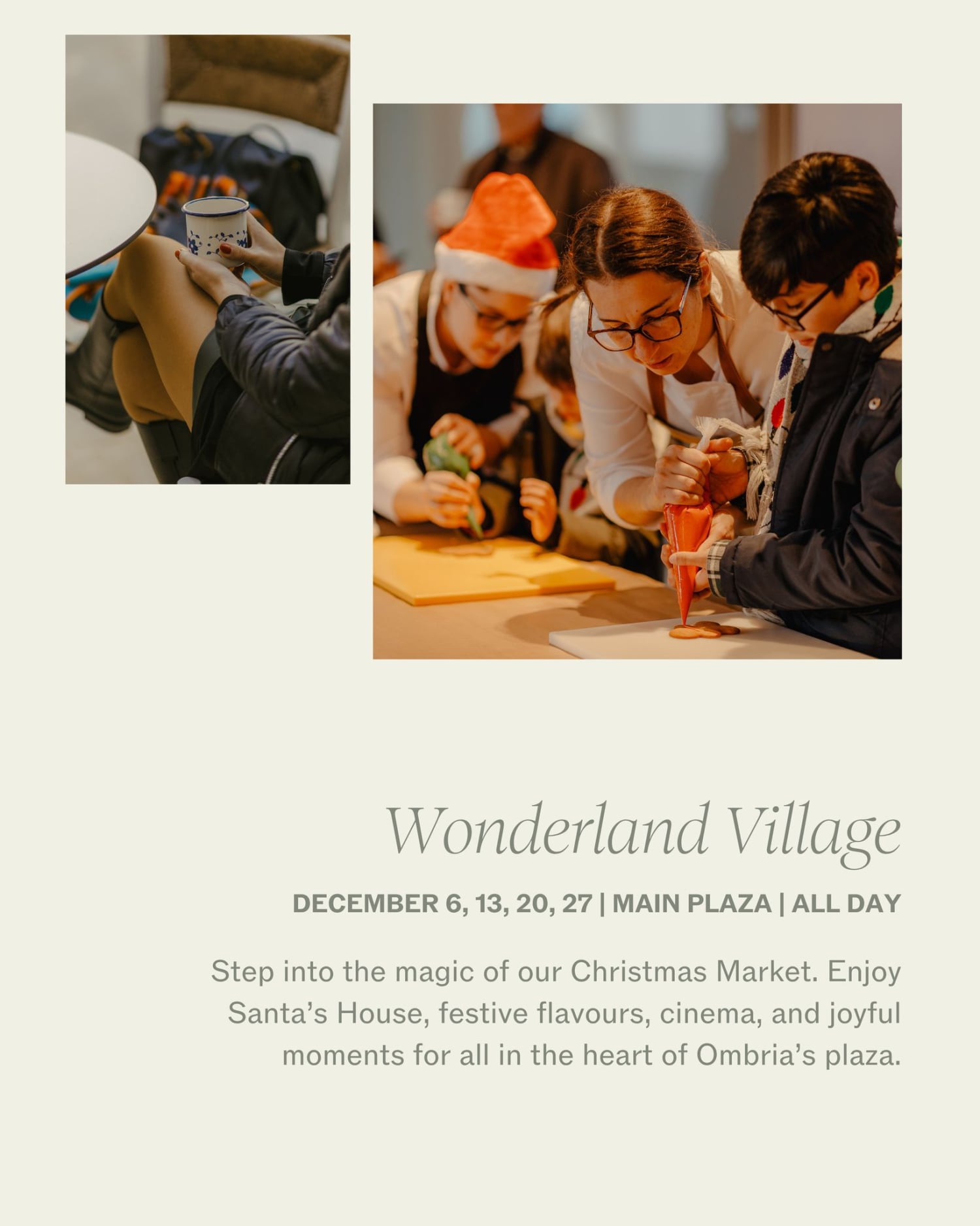 Magia Bożonarodzeniowa w Wiosce Cudów! Każda sobota w Viceroy przy Ombria Algarve. Wstęp wolny. Odwiedź Mikołaja, obejrzyj seanse filmowe, degustuj świąteczne przekąski, przeglądaj Jarmark Bożonarodzeniowy.