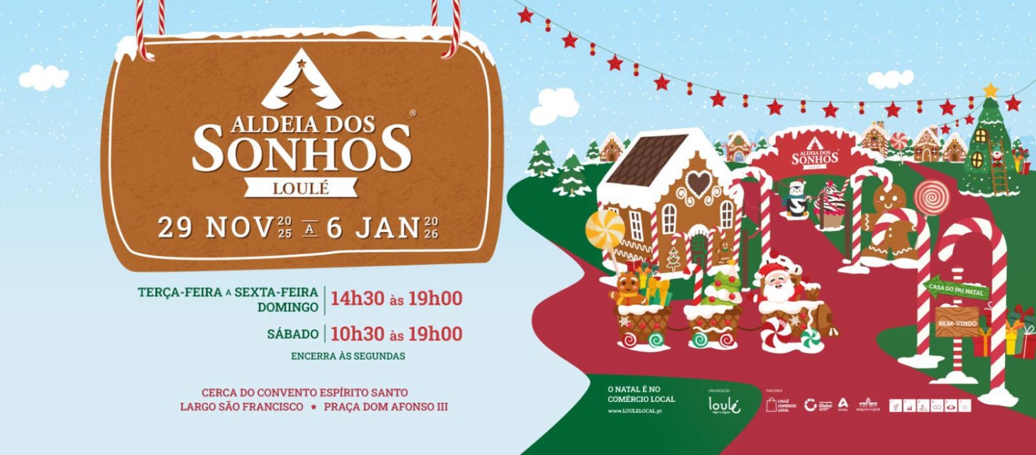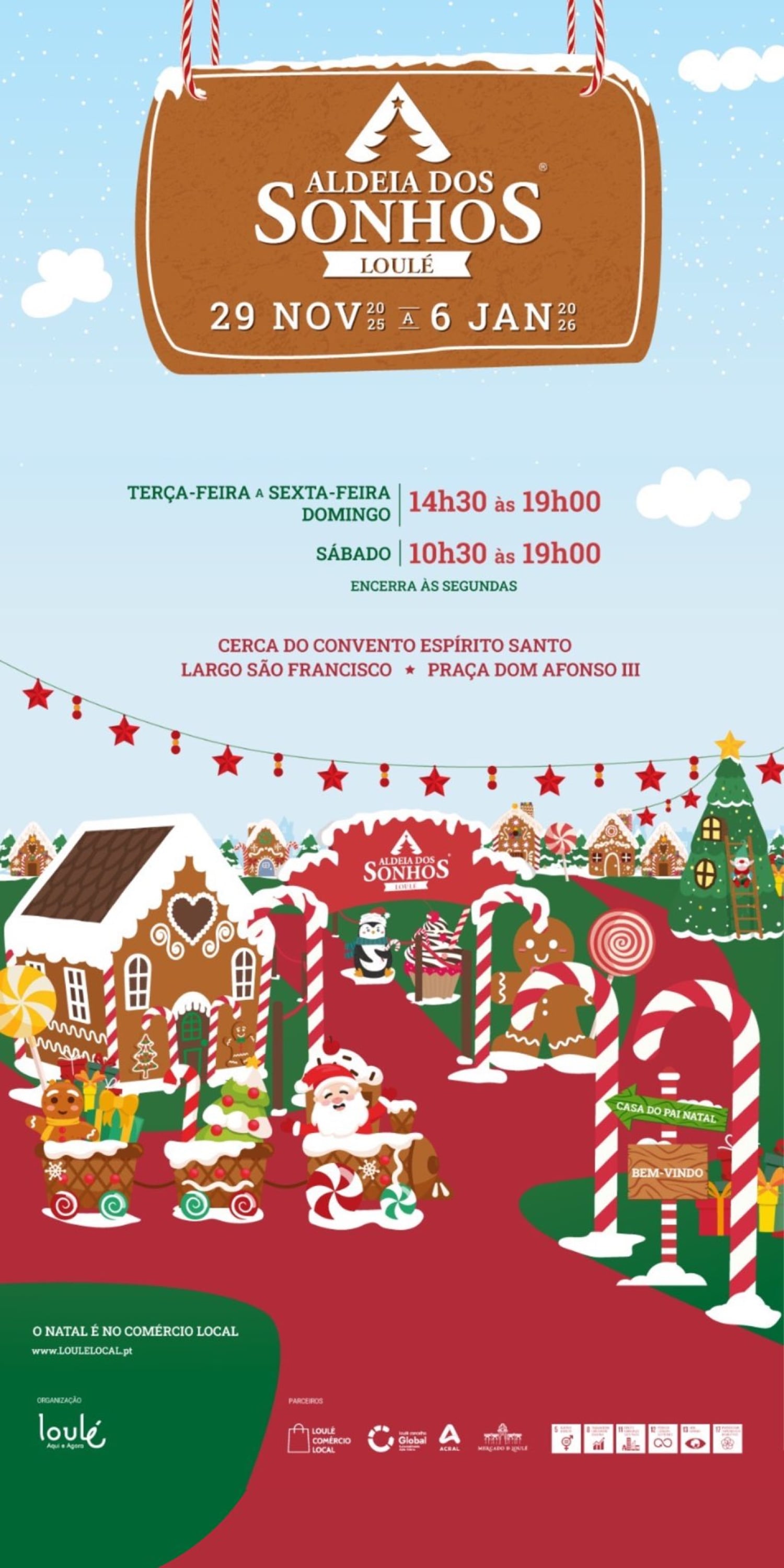 Diversão de Natal em Loulé, Quarteira e Almancil! Visite as aldeias de Natal onde as crianças podem conhecer o Pai Natal e desfrutar de momentos divertidos em família num ambiente festivo. Entrada gratuita!