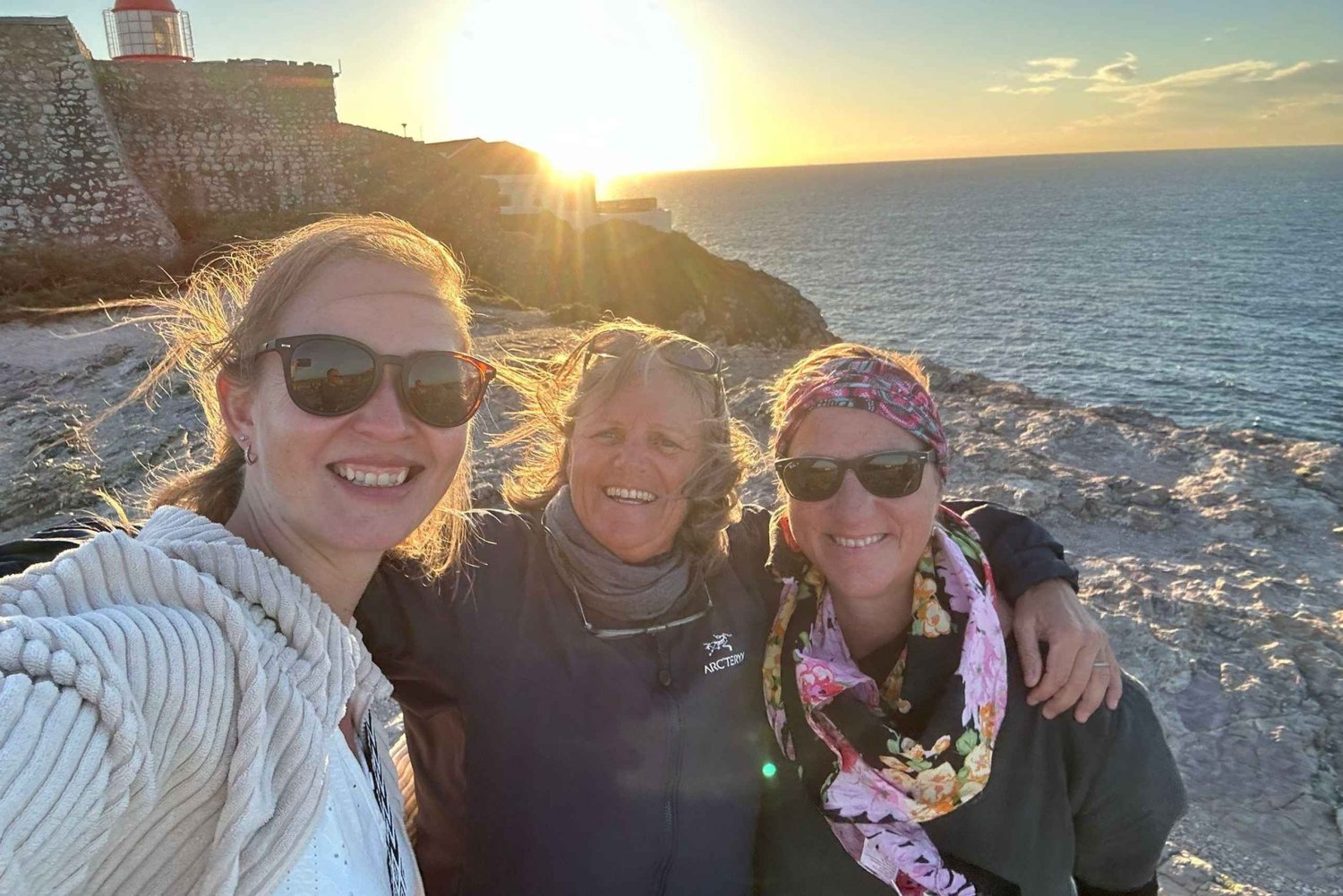 Depois do almoço, seguimos para um dos pontos de referência mais emblemáticos do Algarve: O Cabo de São Vicente, também conhecido como 'O Fim do Mundo'. Este cabo de cortar a respiração marca o ponto mais a sudoeste da Europa continental. Com as suas falésias escarpadas, as ondas a rebentar e o farol histórico que fica de sentinela sobre o mar, é fácil perceber porque é que os romanos acreditavam que este era o limite do mundo conhecido. Sente o poder do oceano enquanto desfrutas de uma vista inspiradora.