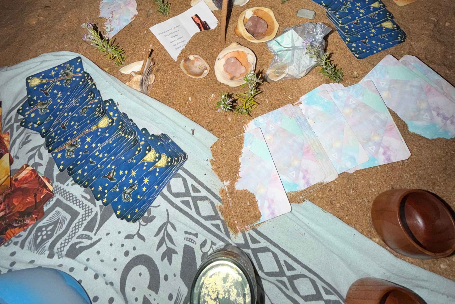 Começa com uma receção calorosa e um momento de ancoragem na praia. Desfruta de uma leitura personalizada onde me conecto com o espírito e sintonizo com a tua energia. Recebe orientação e perceção usando três baralhos de cartas: Tarot, Oráculo e cartas de Cura.