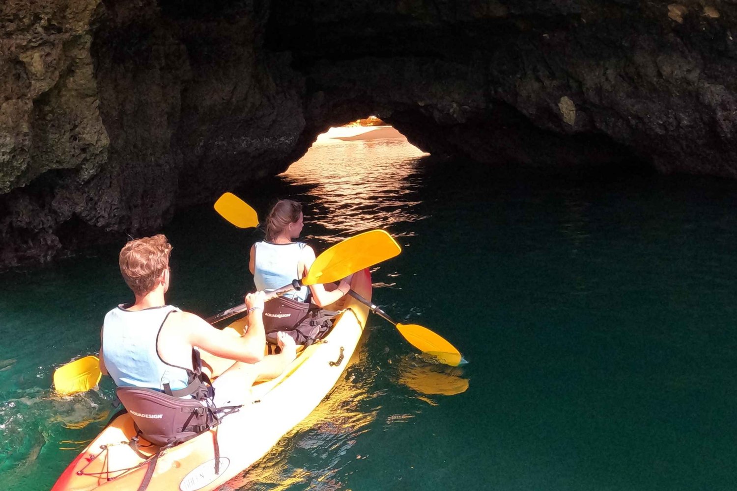Albufeira: Praias Escondidas e Falésias Tour Guiado de Caiaque pelas Cavernas