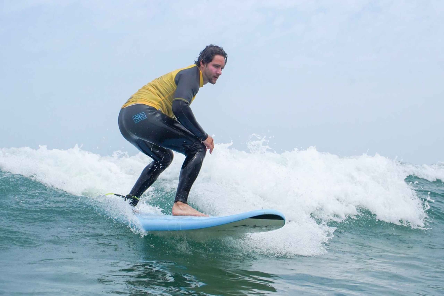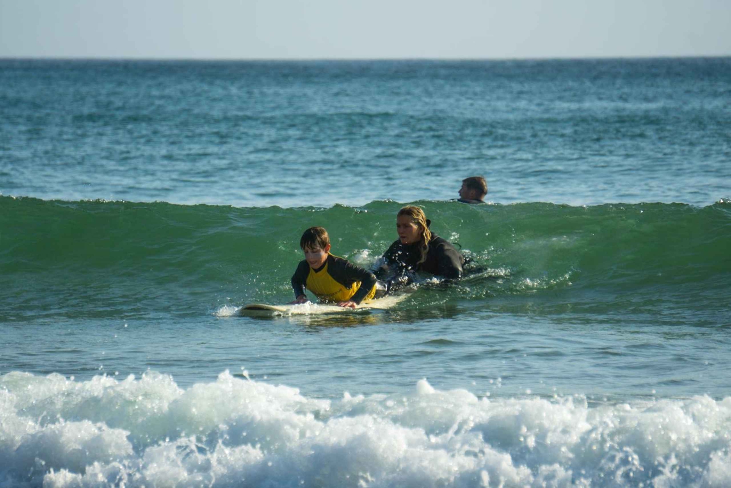 Começa com uma introdução do teu instrutor experiente sobre as noções básicas de ondas, correntes, marés e equipamento, como remar e manusear a prancha de surf na água de uma forma segura. Os principiantes usam pranchas de espuma para maior segurança e fatos de mergulho completos para se manterem quentes e confortáveis.