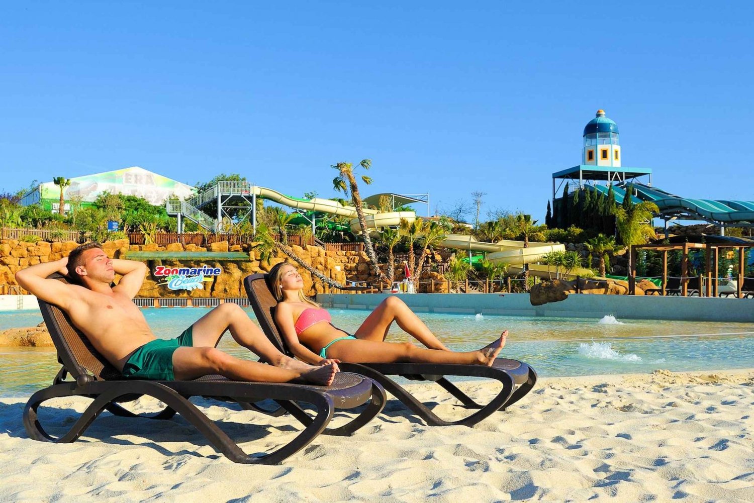Relaxa na Zoomarine Beach, uma nova área de diversão aquática, onde vais encontrar uma piscina de ondas rodeada de areia branca, escorregas, piscinas e um parque aquático.