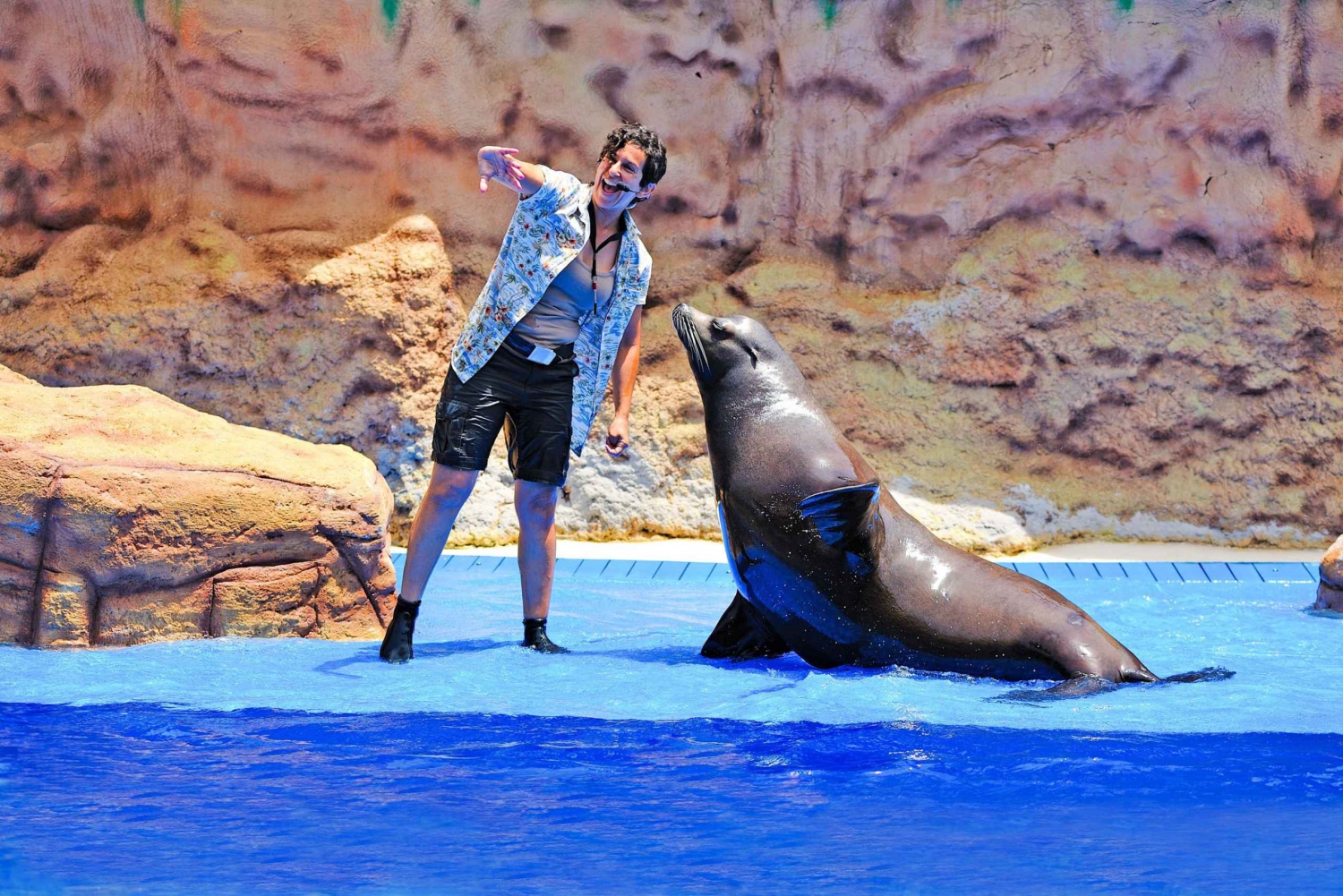 Vê uma apresentação espetacular de golfinhos que é educativa e divertida – aproxima-te de leões-marinhos e focas e caminha entre aves de rapina e aves tropicais numa floresta encantada.
